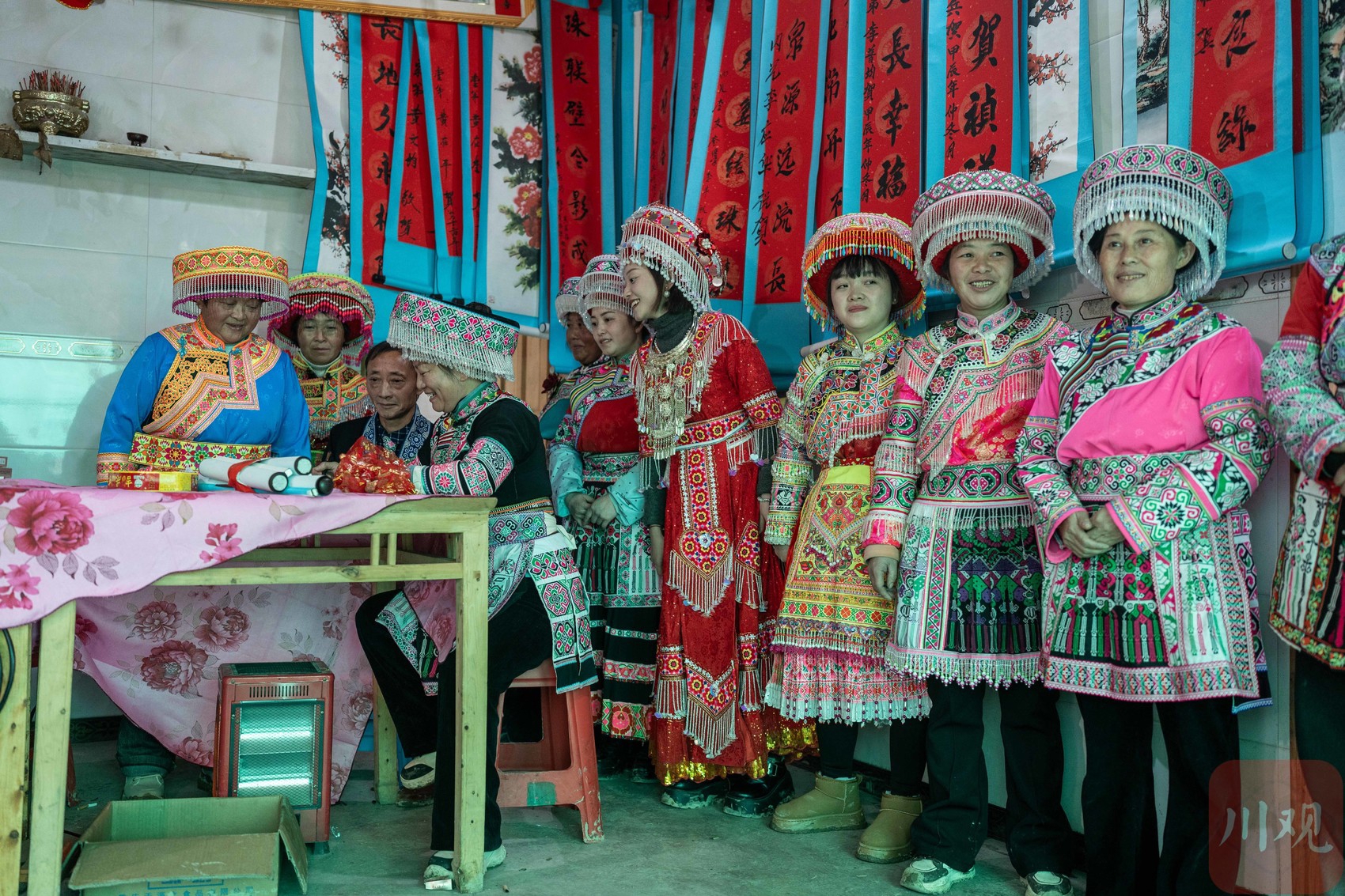 位于盆地南缘的宜宾市兴文县,其中苗族同胞超过4万人,是四川省苗族聚居人口最多的县。苗族的婚礼习俗仪式含蓄复杂且丰富多彩,但随着时代变迁和生活节奏的加快,嫁妆、服饰等渐渐变得实用,川南苗族的婚礼习俗逐渐变得简约。