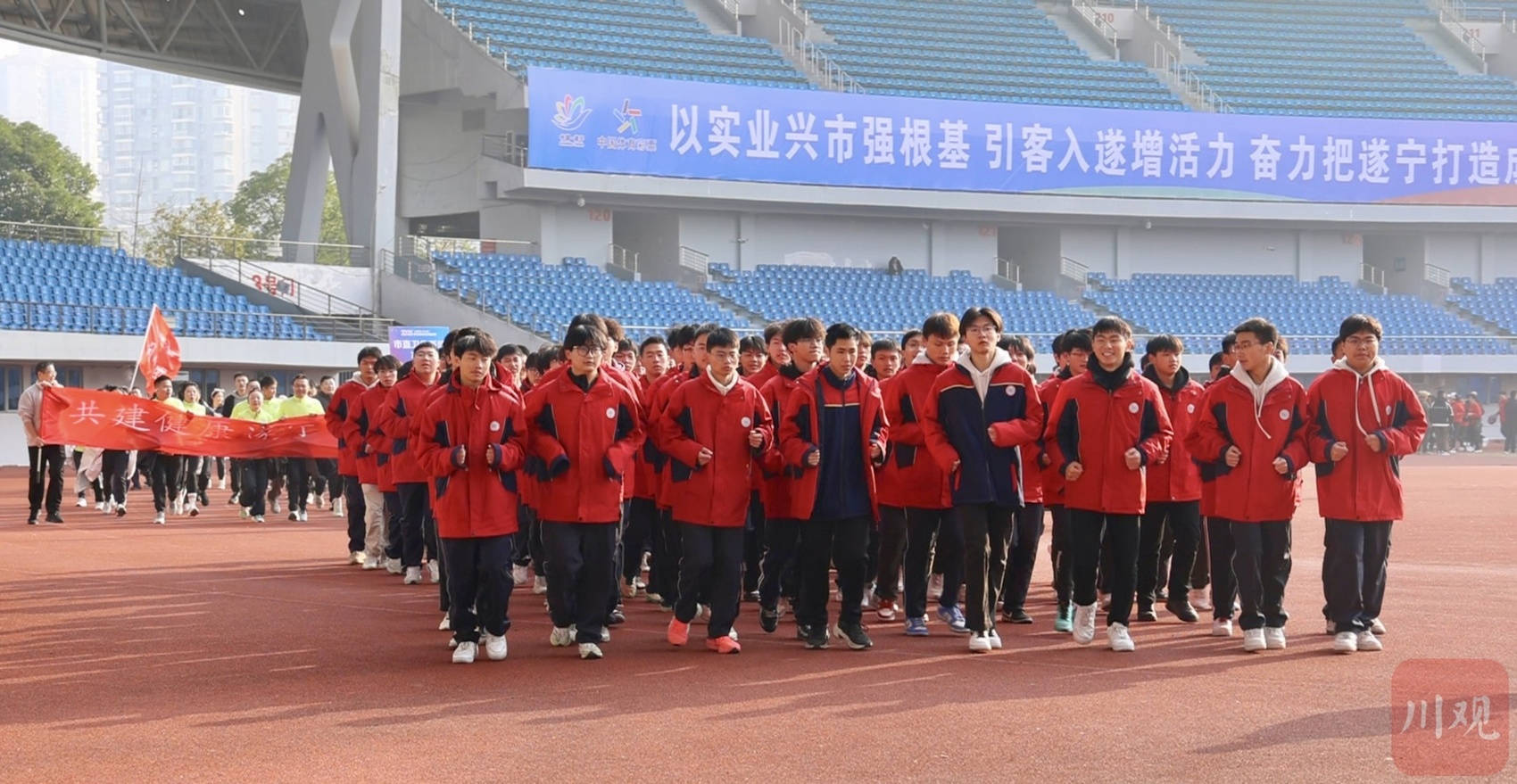 1月1日,“迎新春·庆元旦”2025遂宁观音湖全民健身跑在遂宁市体育中心鸣枪开跑。来自遂宁市机关、学校、企业等3000余名跑友组成28支方队,步伐矫健冲刺向前。