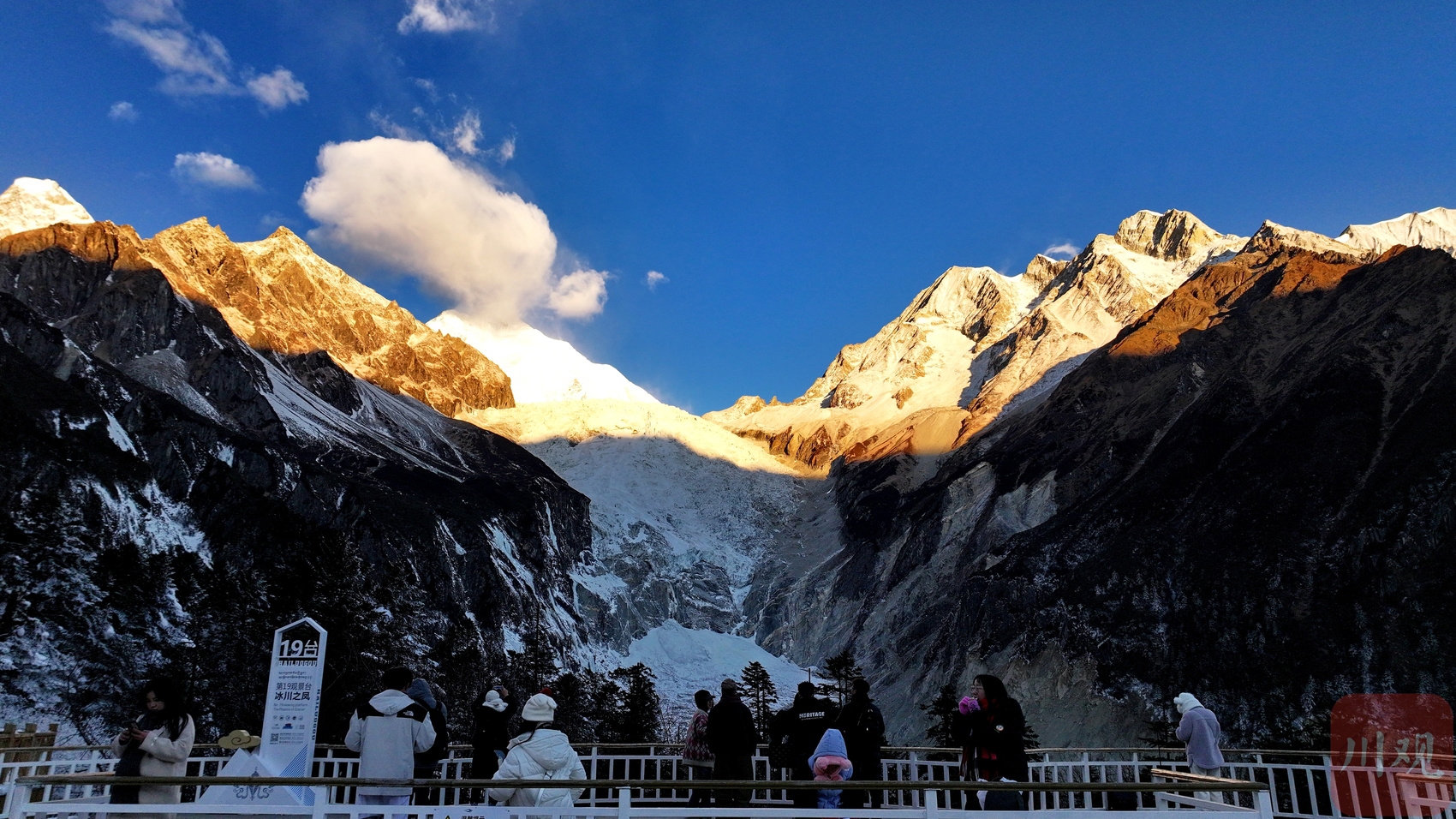 2025年1月1日,冬游四川甘孜风光旅游季“跟着达人游甘孜”活动在海螺沟景区启动,吸引了大批来自全国各地的摄影爱好者、网红达人前来打卡拍摄、直播贡嘎雪山新年第一缕阳光!