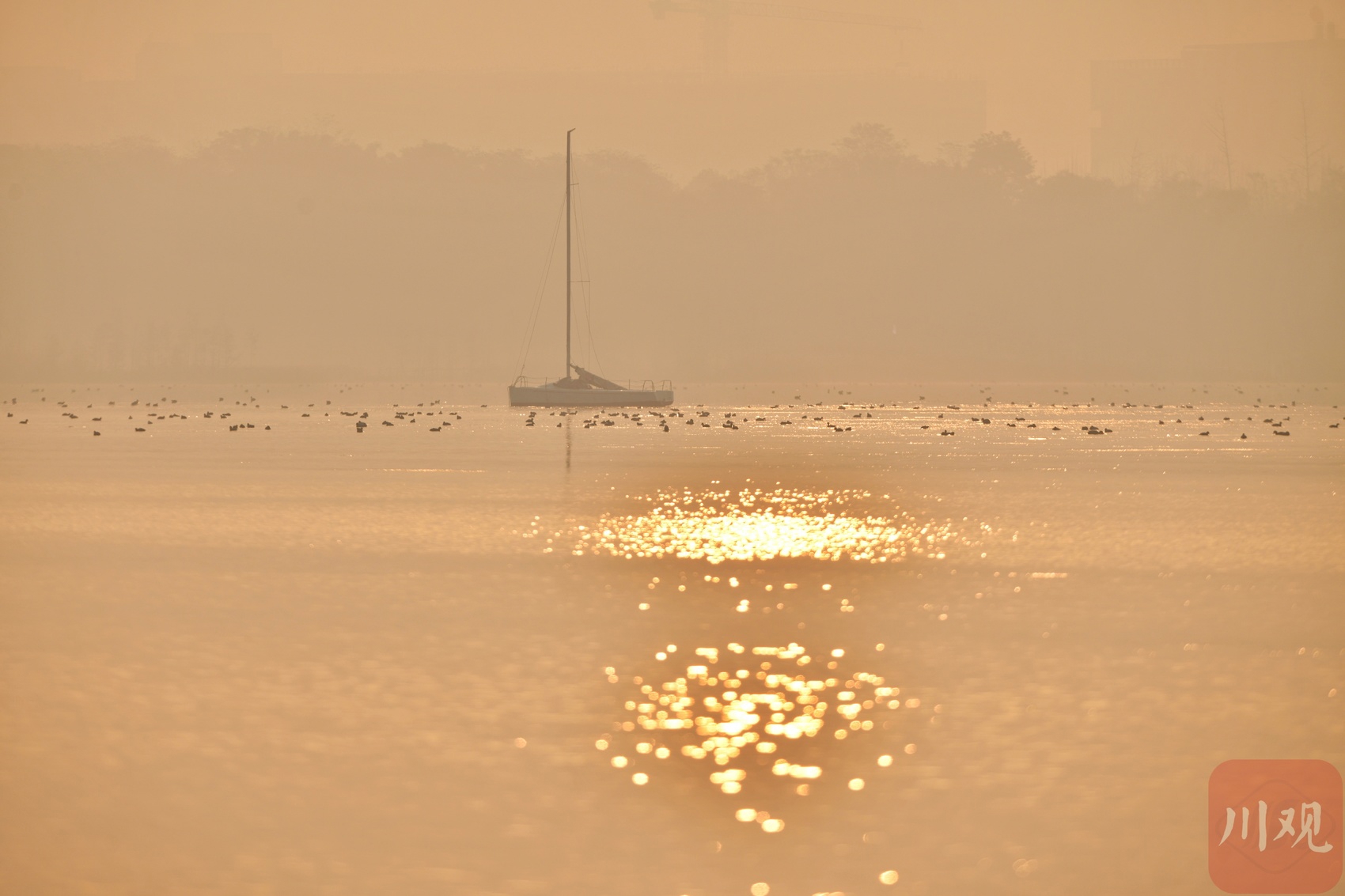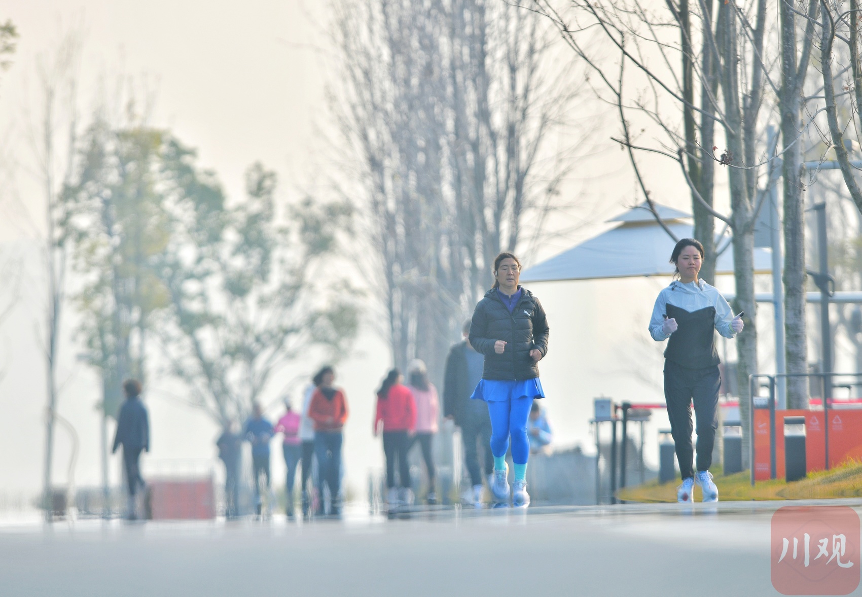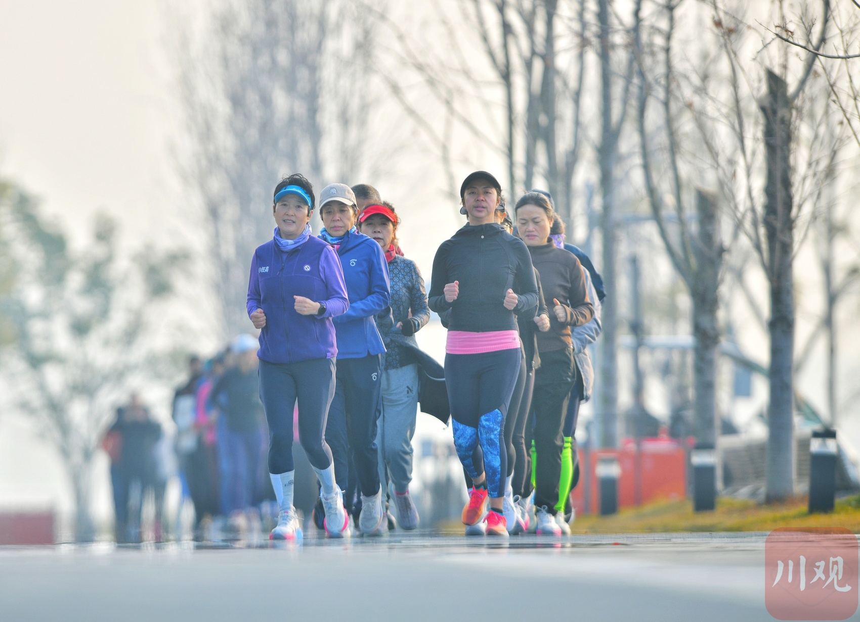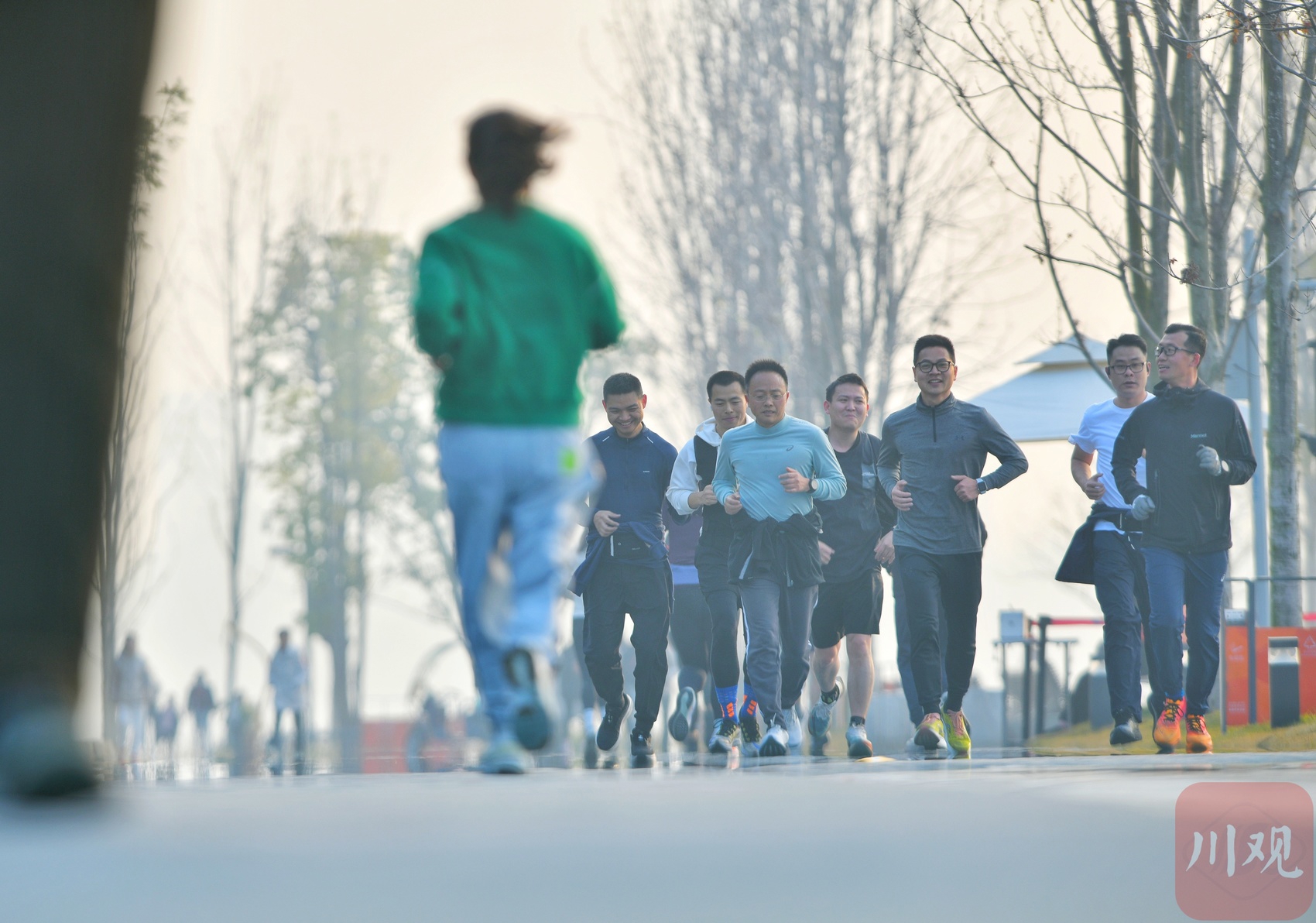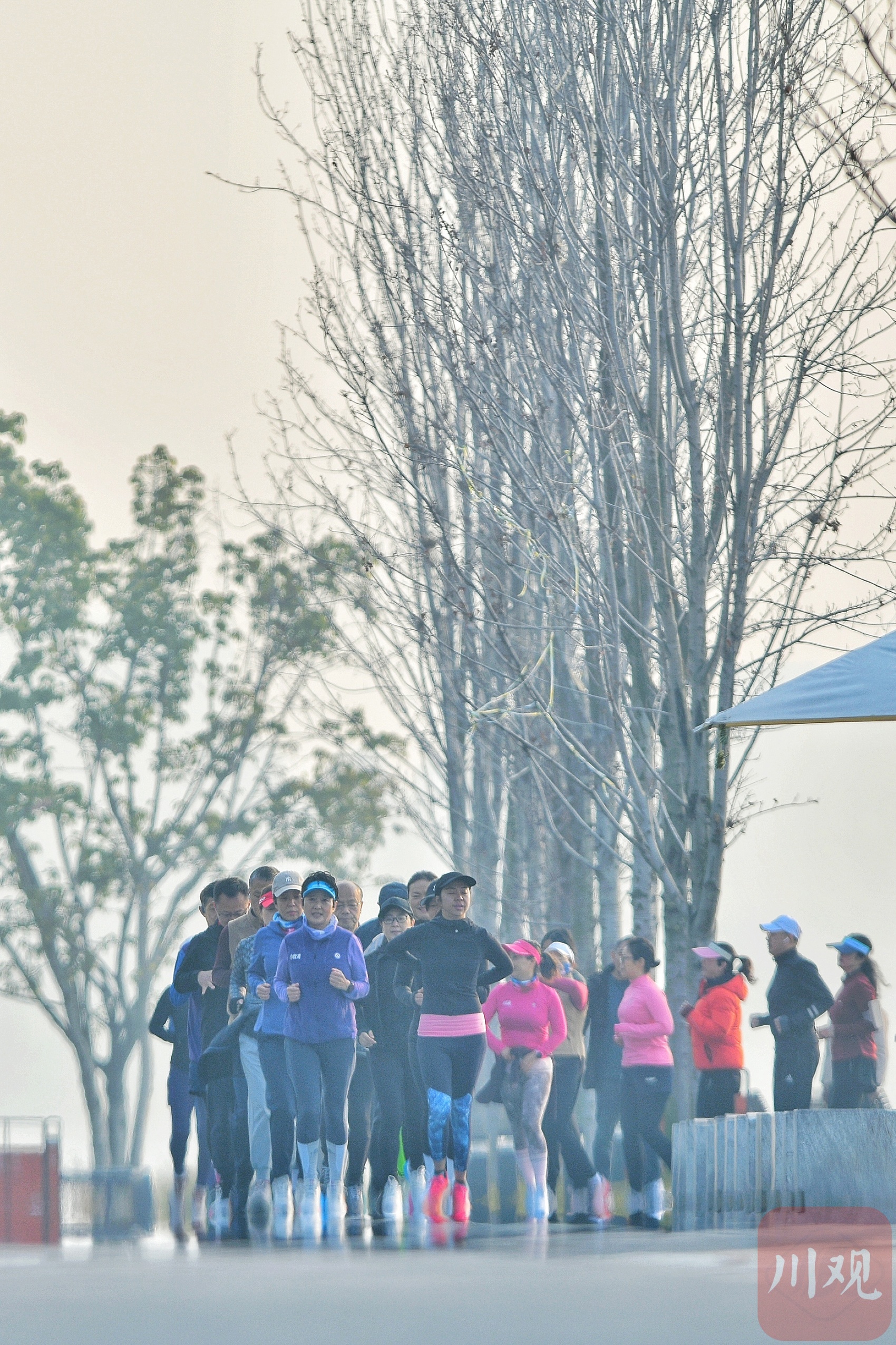2025年1月1日元旦清晨,踏着新年初升的暖阳,四川在线记者在成都兴隆湖看到,不少市民们相约兴隆湖环湖绿道,以慢跑健身来迎接新年。