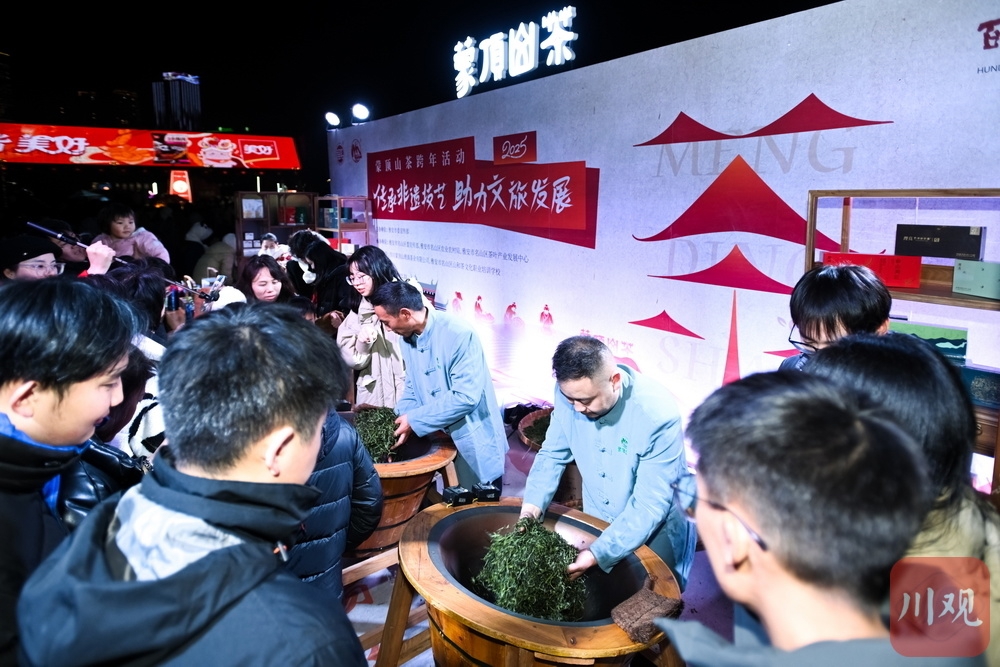 2024年12月31日,在成都开展的“星河之约”天府大屋檐2024—2025跨年活动中,以“传承非遗技艺 助力文旅发展”为主题的蒙顶山茶2025成都跨年活动亮相秦皇湖畔。