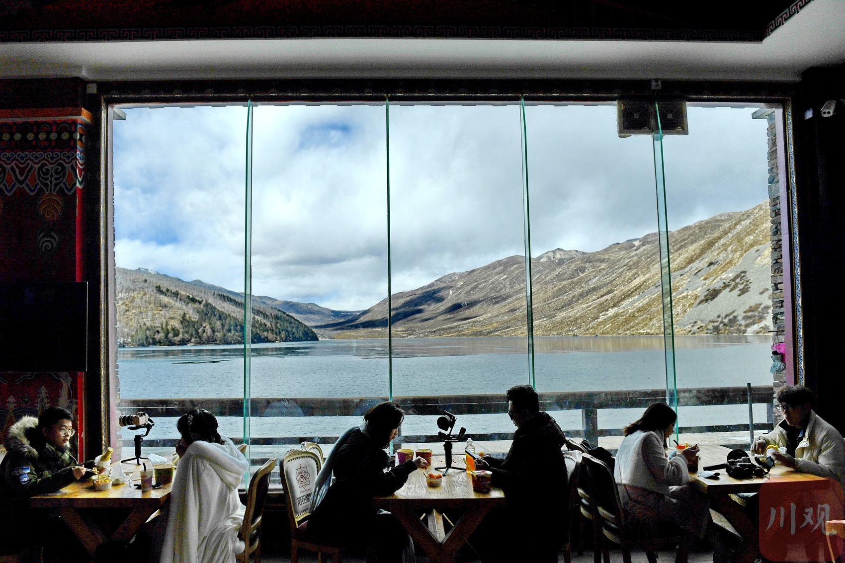 2025年1月2日,游客在四川省甘孜州康定市木格错景区一边欣赏大美风光一边用餐。