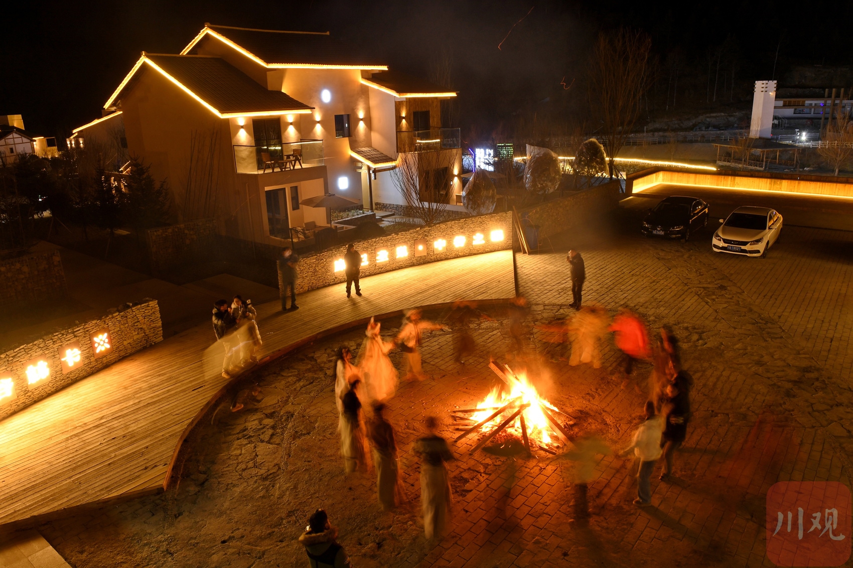 2025年1月1日晚,游客在四川省甘孜州康定市雅拉乡中谷村跳锅庄。