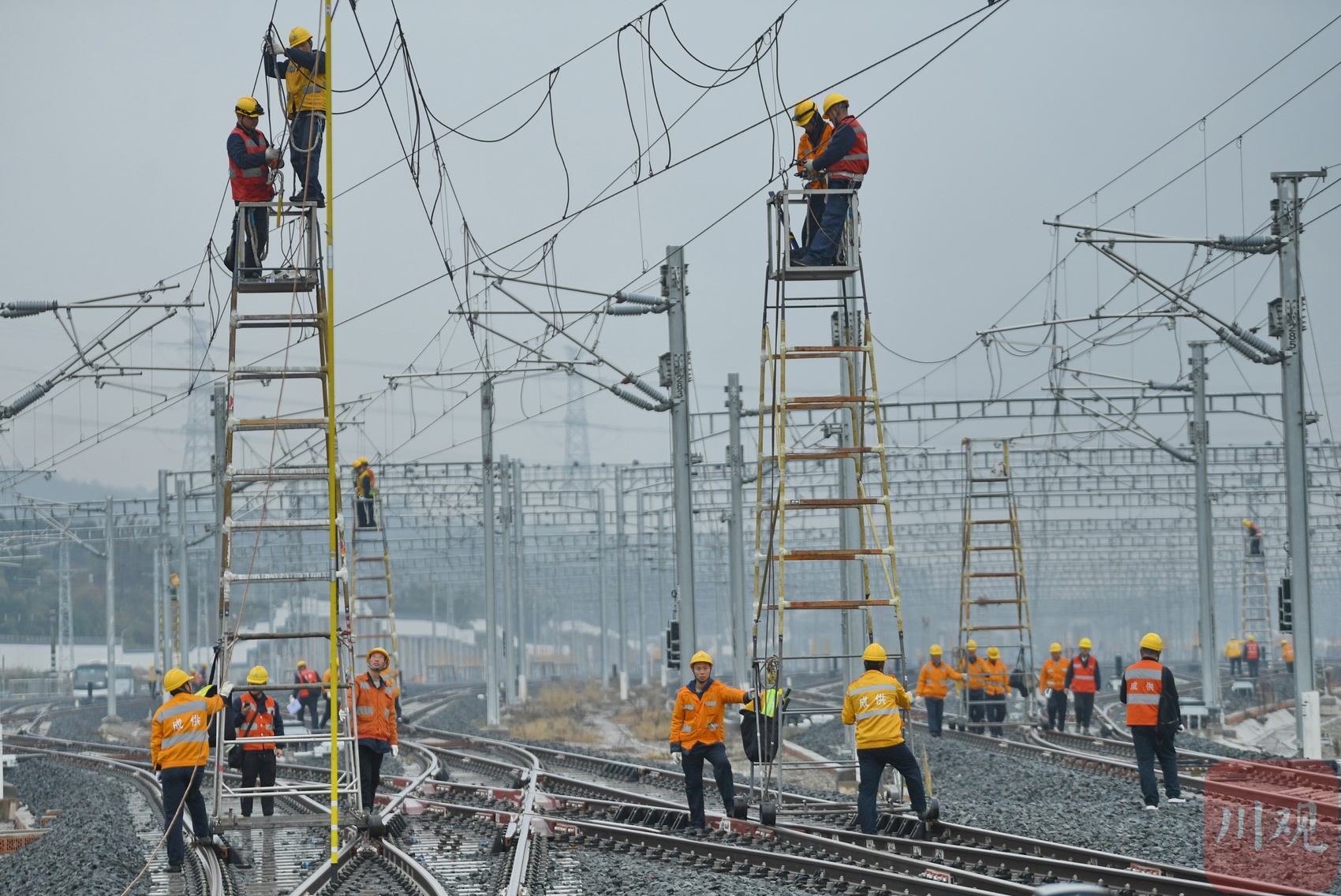 “线路已封锁,停电命令已下达,开始作业!”。1月7日,中国铁路成都局集团有限公司成都供电段组织近百名职工在天府动车所开展接触网设备集中检修,全力确保供电设备运行稳定,保障春运铁路运输安全畅通。