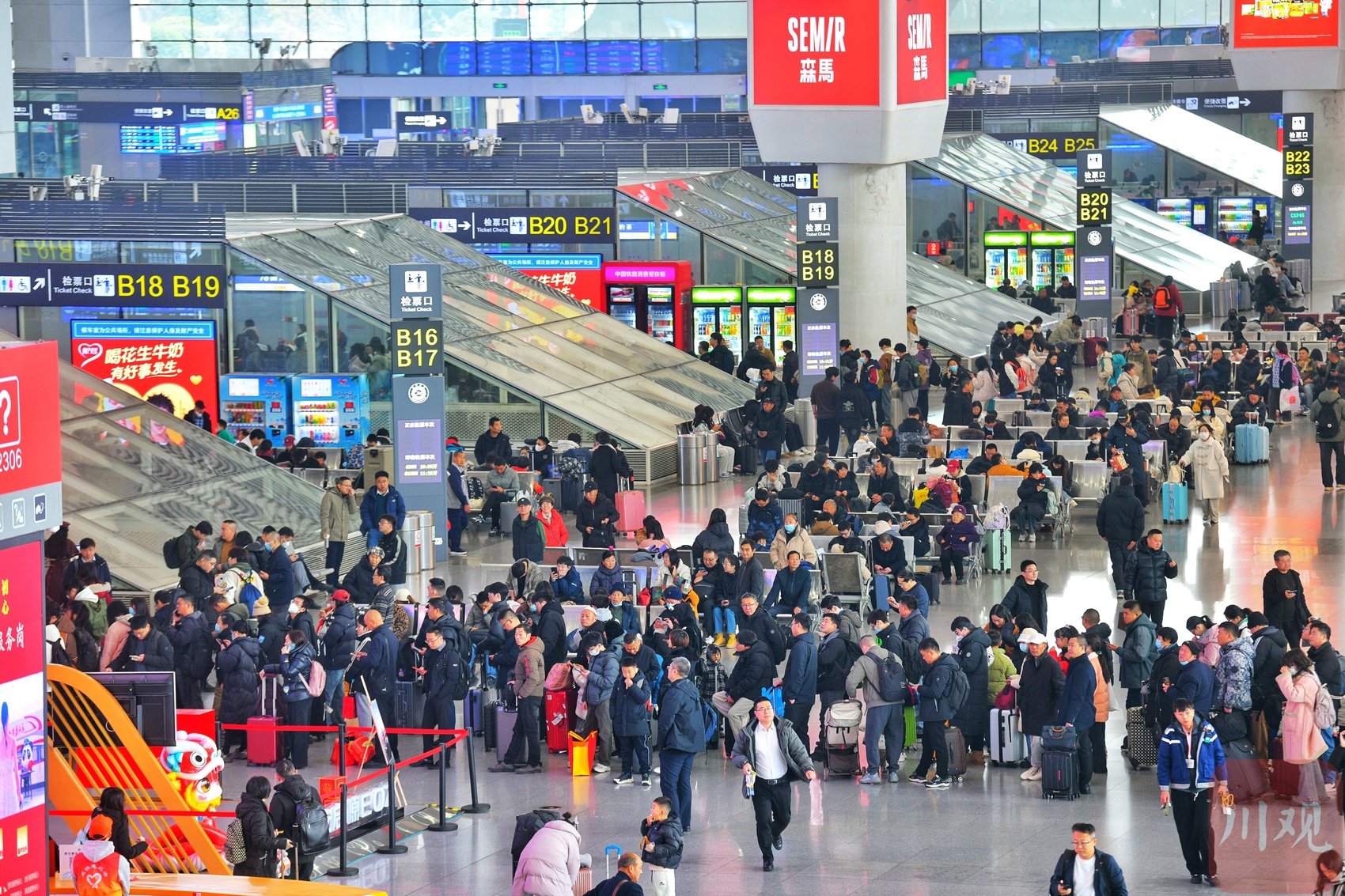 在成都东站,记者从中国铁路成都局集团有限公司成都车站相关负责人了解到,为满足旅客出行需求,春运期间已启用春运列车运行图,成都东站将满图开行405.5对列车。