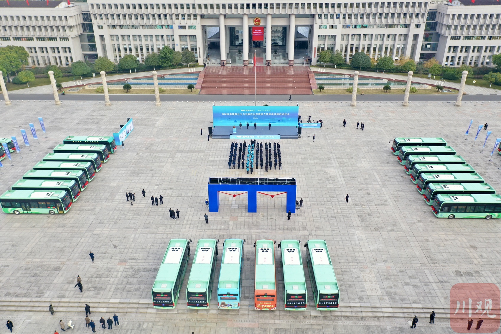 1月16日,遂宁市城区新能源公交车更新投运暨旅游专线焕新升级启动仪式在遂宁市环岛中心广场举行,现场投运140辆新能源公交车,并升级3条旅游路线。