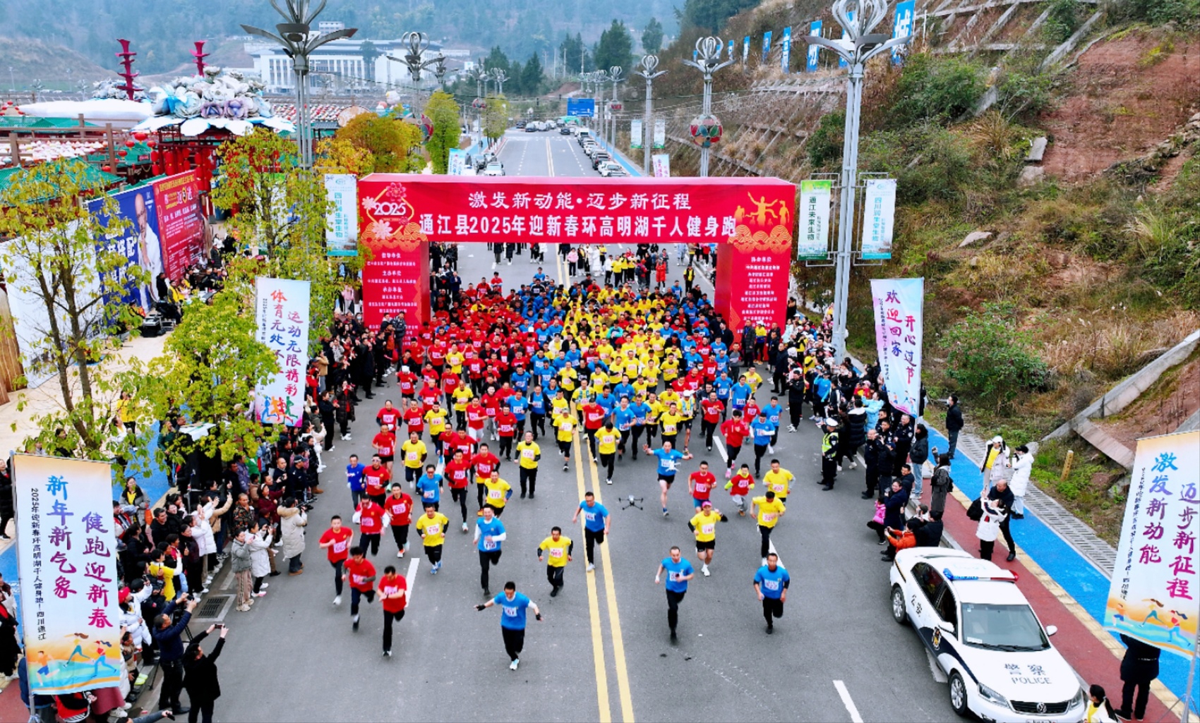 1月17日,在巴中市通江县高明湖畔,上千名市民身着运动套装,蓄势待发,准备开跑。当天,“激发新动能·迈步新征程”通江县2025年迎新春环高明湖千人健身跑活动正式举行。