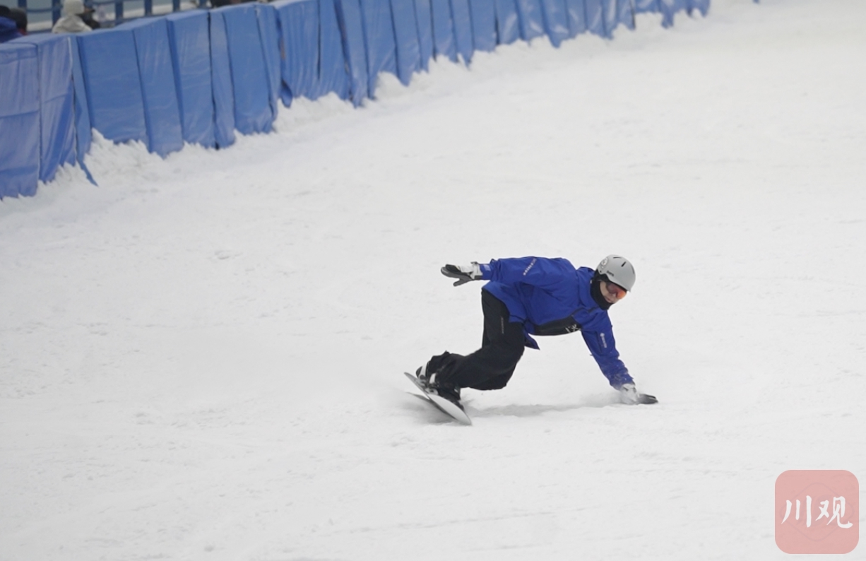 陈月是江苏女孩,因酷爱滑雪,1年前到成都旅游后,就留了下来。“这里有专业的雪道,滑雪氛围非常好,我每周都要来三四次,体验滑雪的乐趣。”