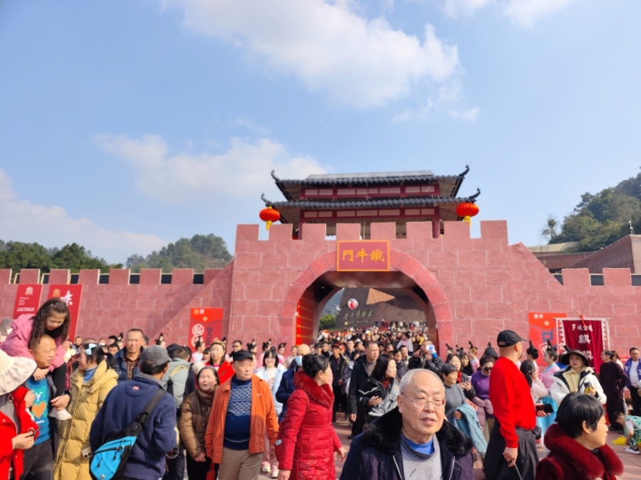 “跟着小白小青逛庙会咯……”1月29日,农历正月初一,乐山大佛文化广场人山人海,2025乐山大庙会在这里热闹开集。峨眉武术、井研女子飞龙、芦笙舞……精彩的开场表演引得观众拍手叫好,随后真人版小白小青出场,带领大家一同跑出“铁牛门”开启大庙会之旅。