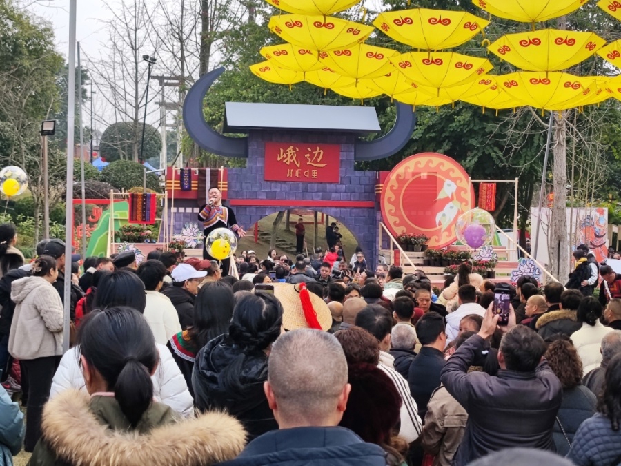 在嘉州长卷·天街,乐山有史以来规模最大、规格最高、参与面最广的民俗大庙会活动铺展开来,11个区县集中推出民俗展演、非遗体验、趣味游戏、古装穿越等活动,全线近4公里,设置展区30余组,展位近1000余个,为市民和游客送上“文化大餐”。