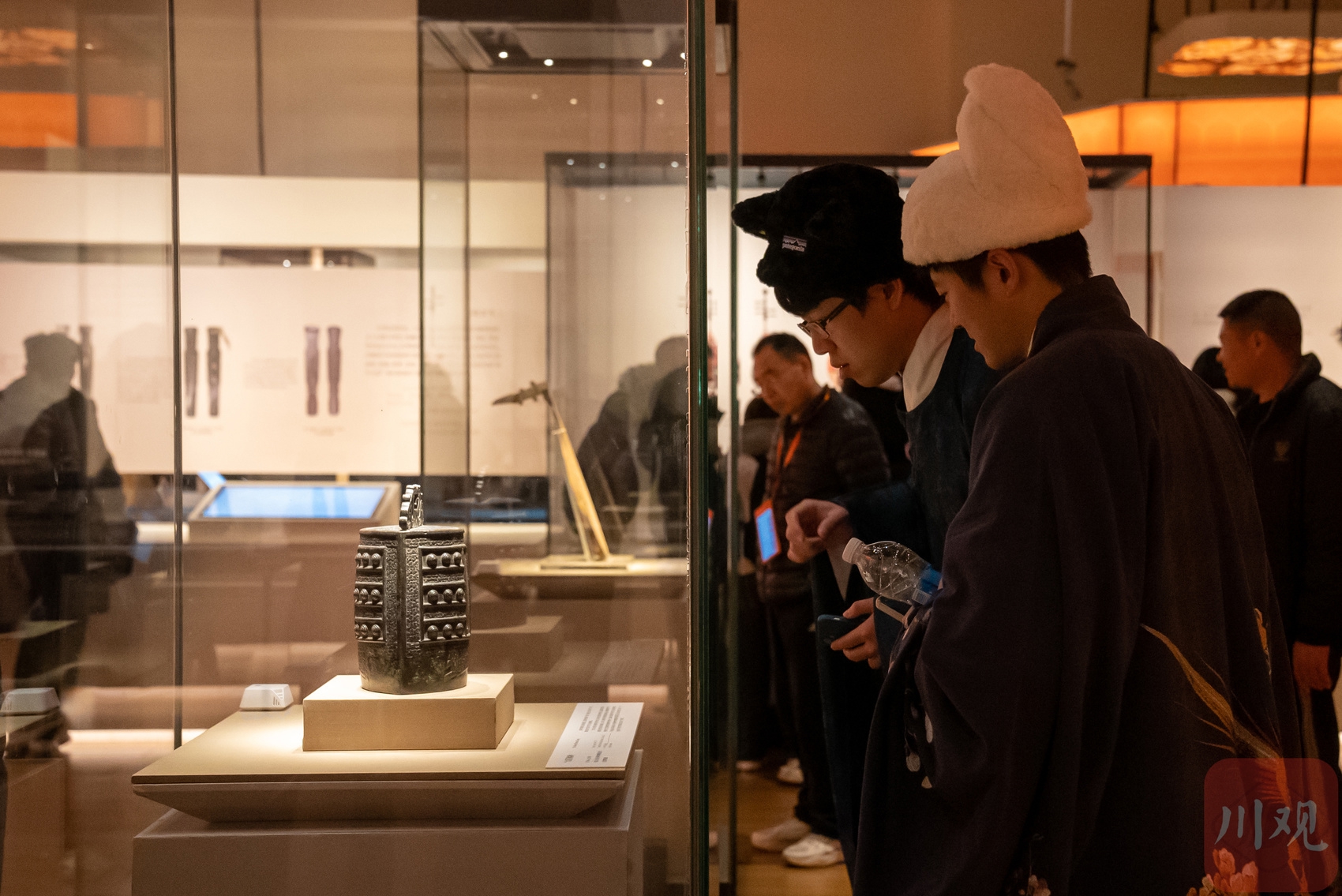 2月1日,四川在线记者来到成都博物馆看到许多市民朋友携亲伴友前来观展。