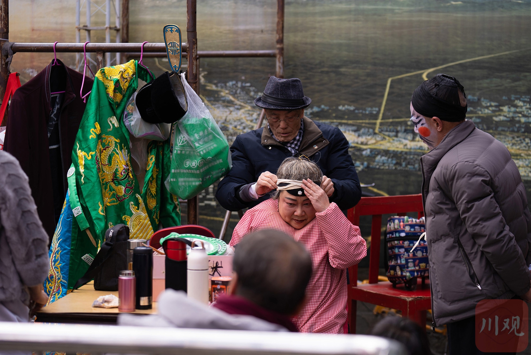 2月3日下午,温江文庙广场,京剧演员正在化妆。