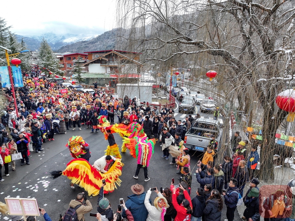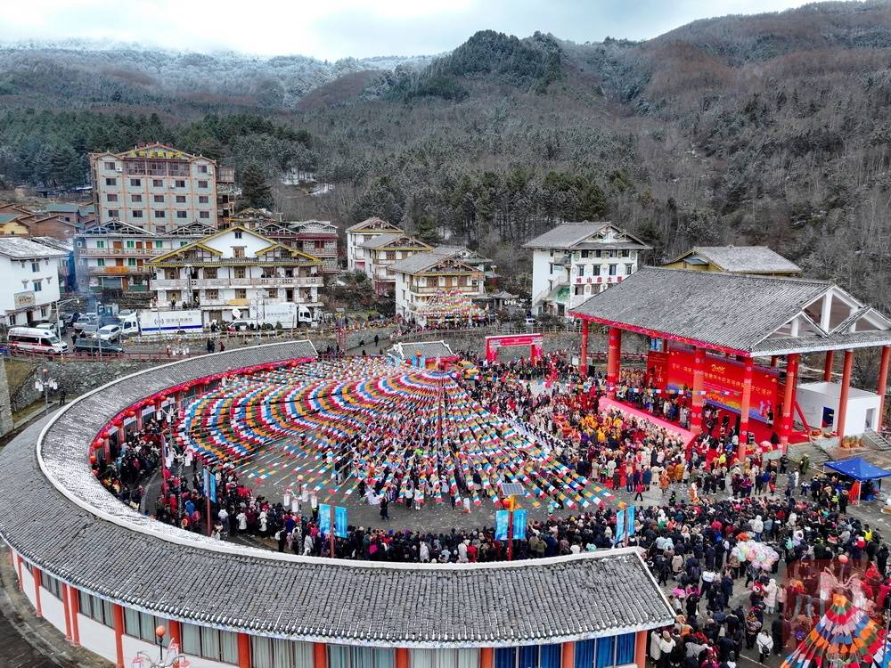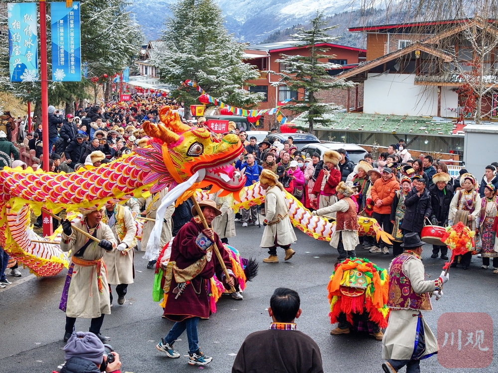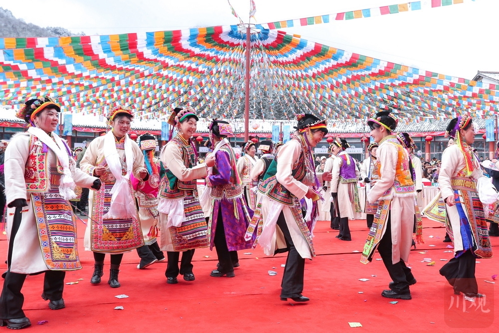 2月6日,正月初九,雅安宝兴县硗碛藏族乡雪后初霁。银装素裹的冰雪世界中,当地群众和来自各地的游客们早早地聚集在一起,载歌载舞,以“畅游非遗藏乡·乐享冰雪奇缘”为主题的2025年宝兴•硗碛上九节暨藏历木蛇年传统民俗文化活动在此举行。