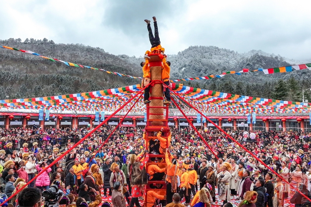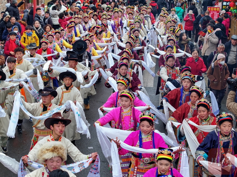 人山人海的巡游表演、激情澎湃的千人锅庄舞和“硗碛迪斯科”……活动现场,在热闹的龙灯、牛灯、狮灯拜年后,省级非物质文化遗产“天鹅抱蛋”和国家级非物质文化遗产“硗碛多声部民歌”纷纷亮相。年味浓浓的非遗表演,令现场观众热情高涨,欢笑声和掌声此起彼伏。