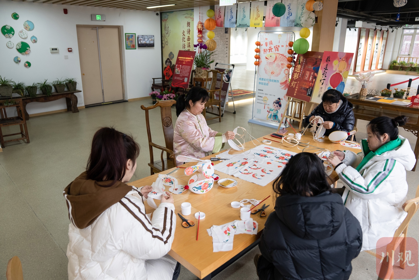 2月11日下午,元宵节前夕,成都市市级非物质文化遗产“彩灯传统制作技艺”区级代表性传承人黄樱樱的工作室内,一场手工课正在进行。几名学员围坐在工作台前,聚精会神地学习兔子灯的制作技艺。