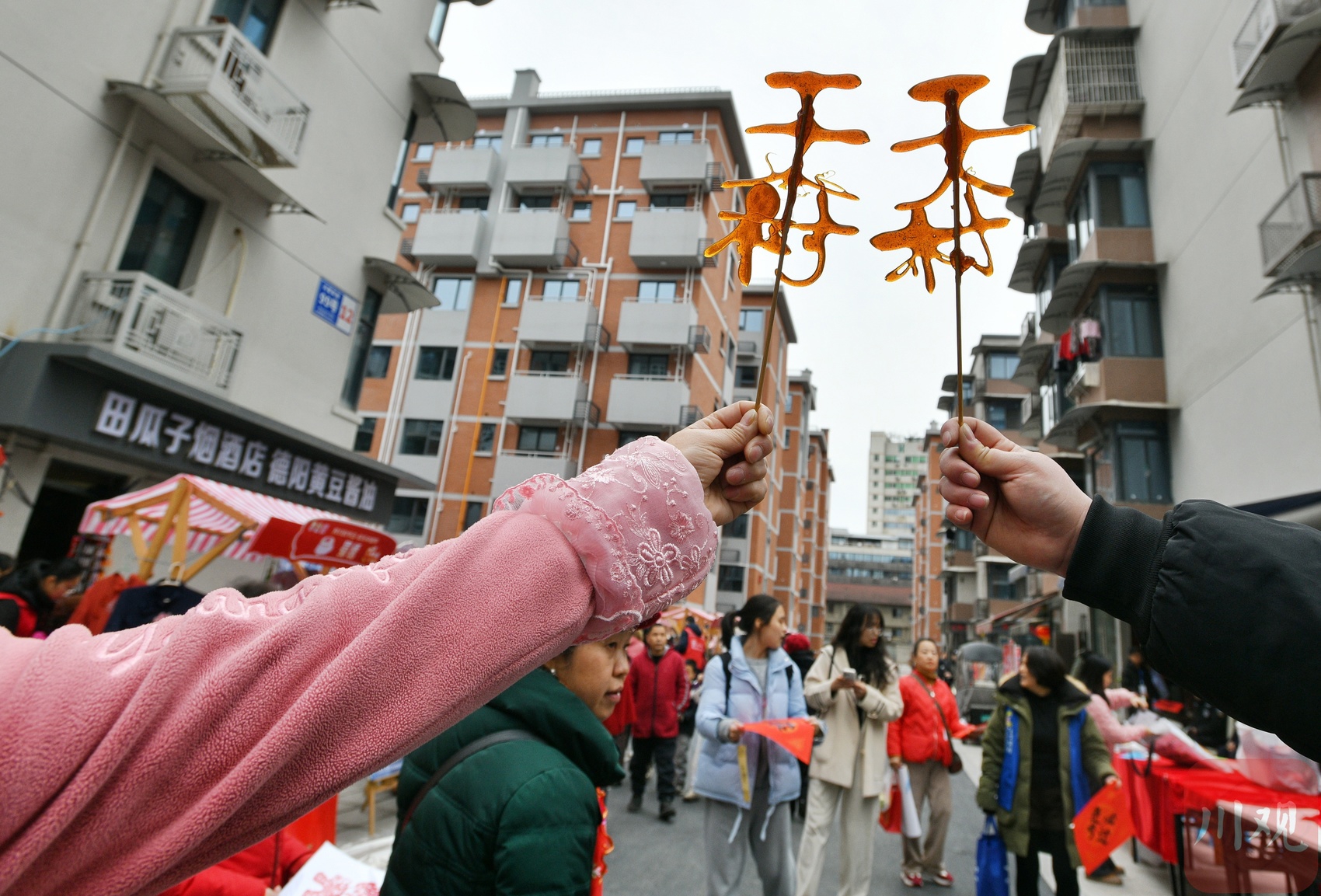新居楼前非遗集市庆元宵。