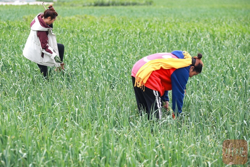 “采蒜薹讲究时机,过早易断,太晚就老了,得看准时机,成熟一点采一点。”据蒜农介绍,因今年气候特殊,蒜薹开采时间较往年推迟了半个多月。目前,蒜薹正陆续进入采摘期,预计本月底大量上市。