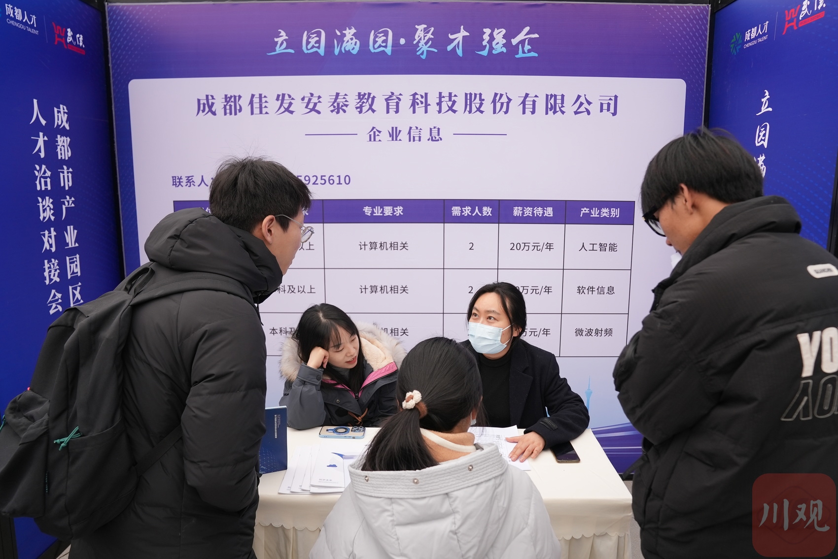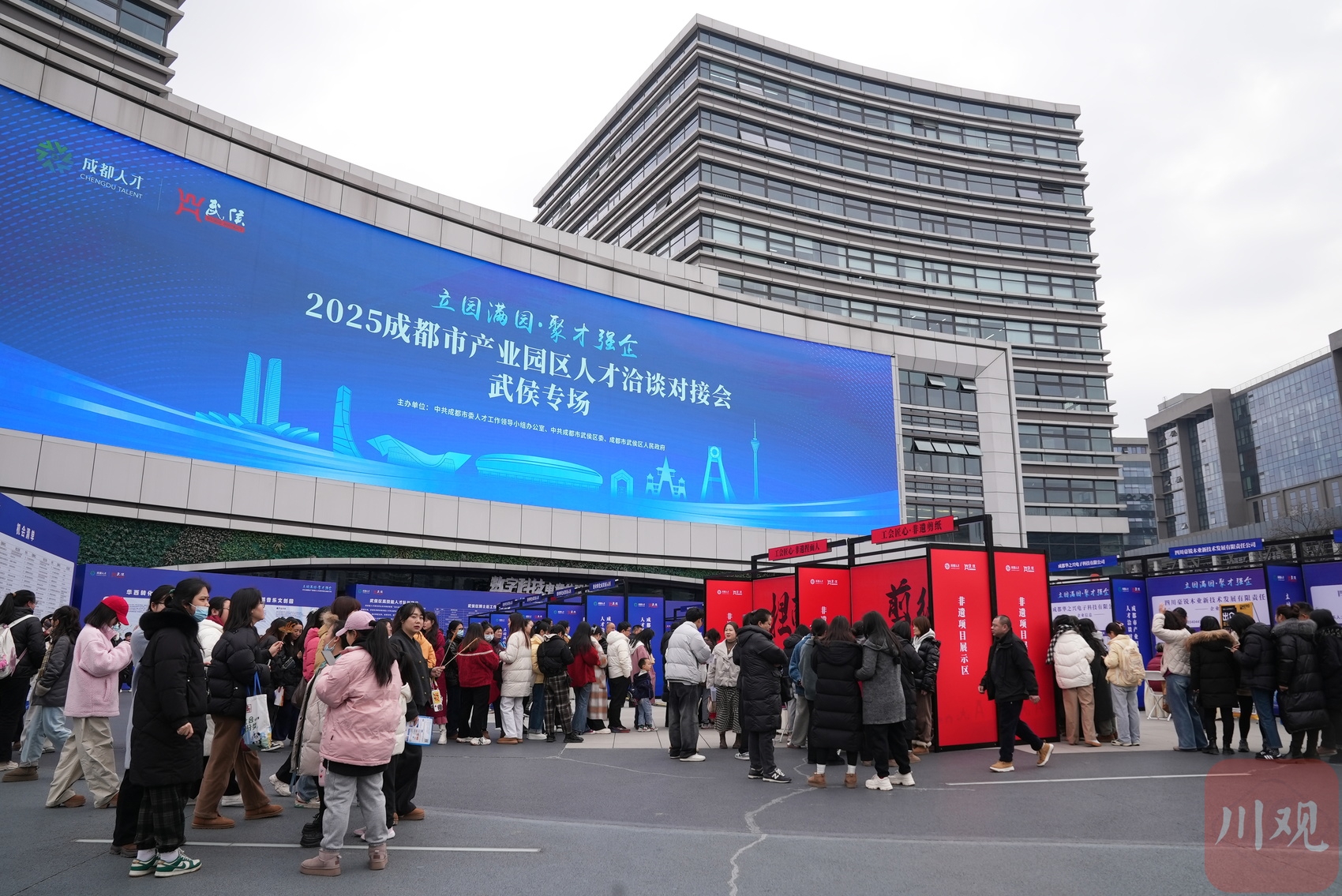 2月14日下午,“立园满园·聚才强企”2025成都市产业园区人才洽谈对接会(武侯专场)在武侯区智谷C8·环球数码大厦举行。现场分为了招聘专区、政策咨询区、非遗项目展示区和创业孵化成果展示区。在招聘专区,四川大学、西南交通大学、西南技术物理研究所、四川锦江电子医疗器械科技股份有限公司等120余家重点企业提供了2600余个优质岗位,涵盖电子信息、智能制造、生物医药等多个领域,吸引了近千名优秀人才参加。