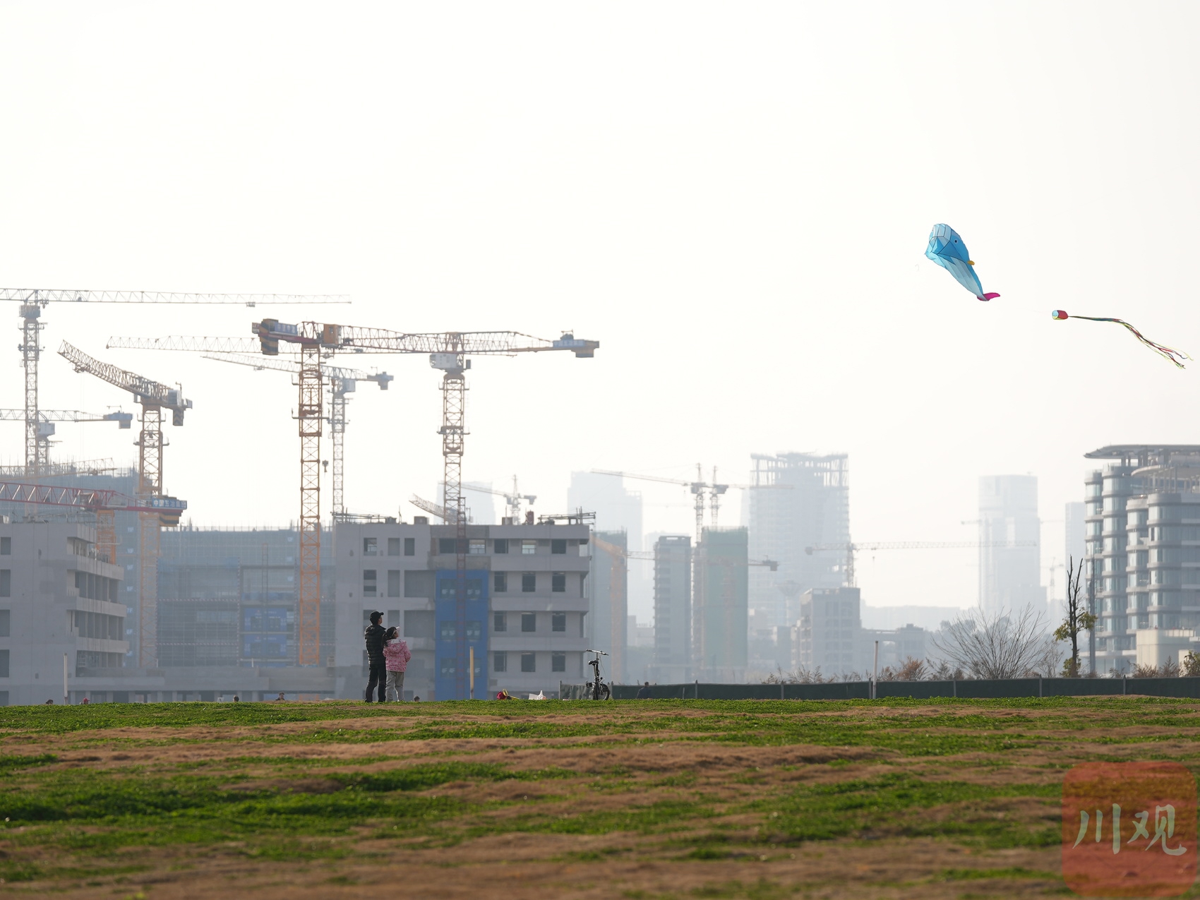 2月15日,成都市锦江区,市民放飞风筝享受周末时光。