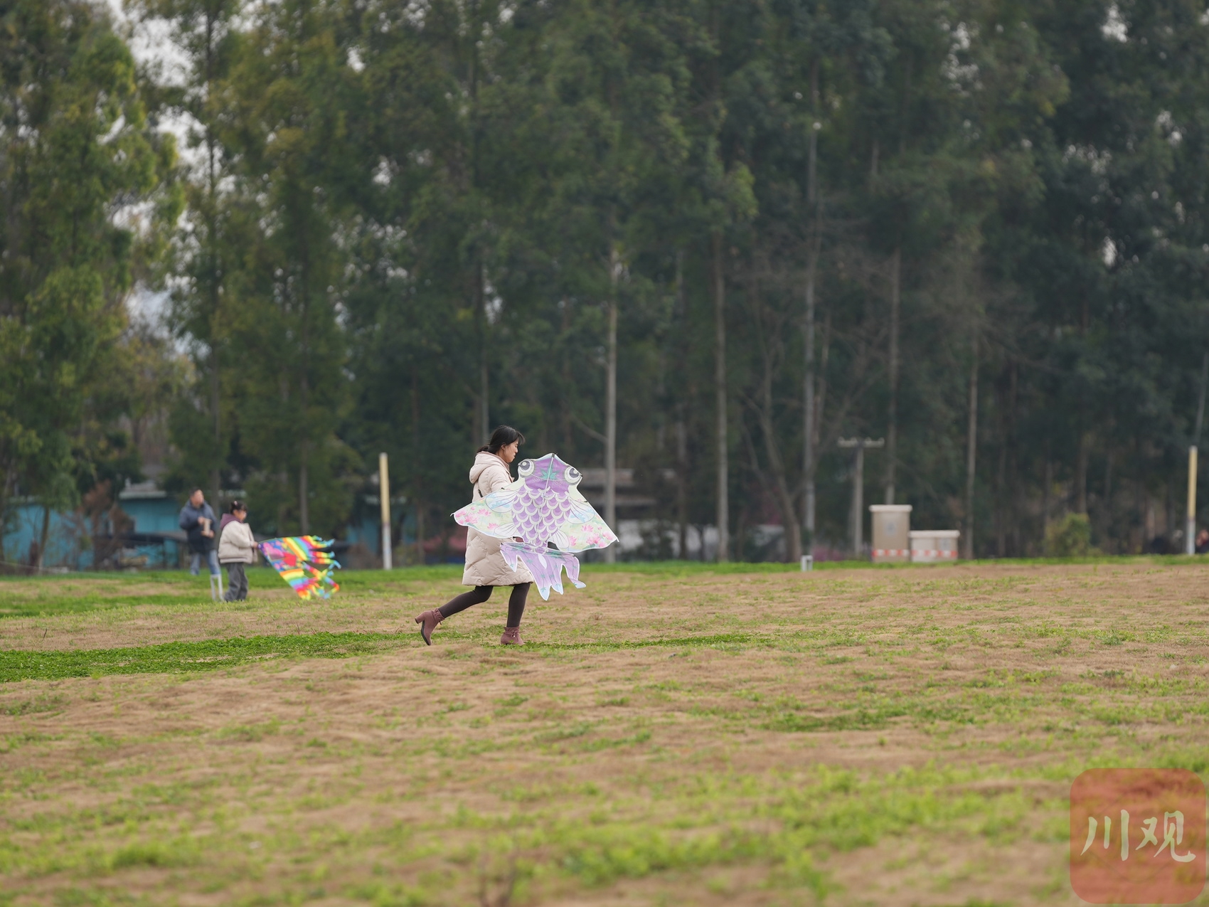 2月15日,成都市锦江区,市民准备放飞风筝。