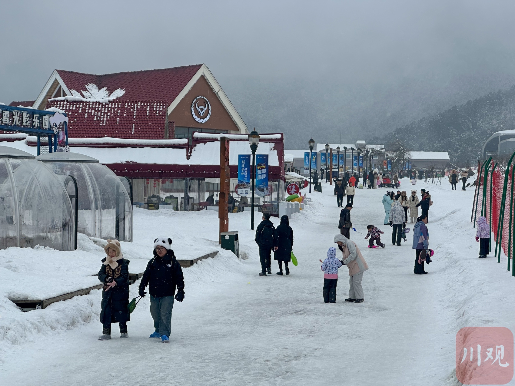 2月16日下午,成都西岭雪山,父母带孩子在雪地里玩耍。
