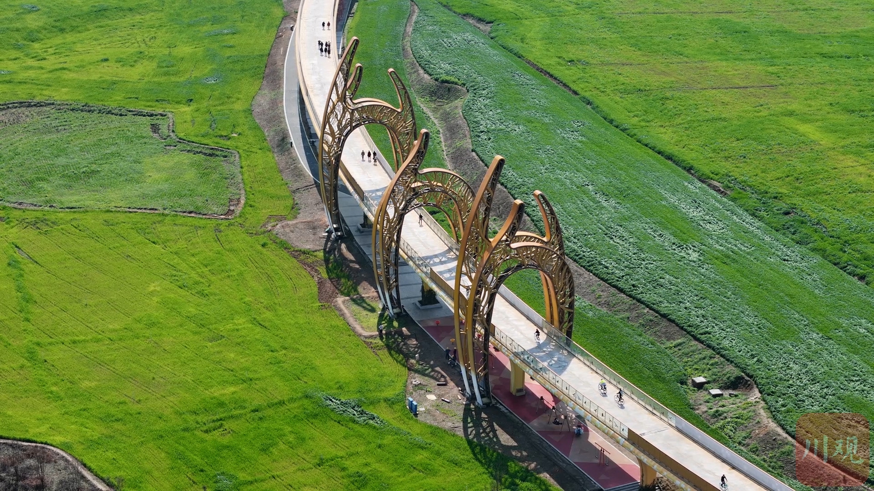 2月26日,在成都环城生态区青龙湖绕城高速外侧的田野里,微风吹拂着麦田青色的麦穗,空气中弥漫着泥土的芳香,不少市民游客在环城绿道上骑行。