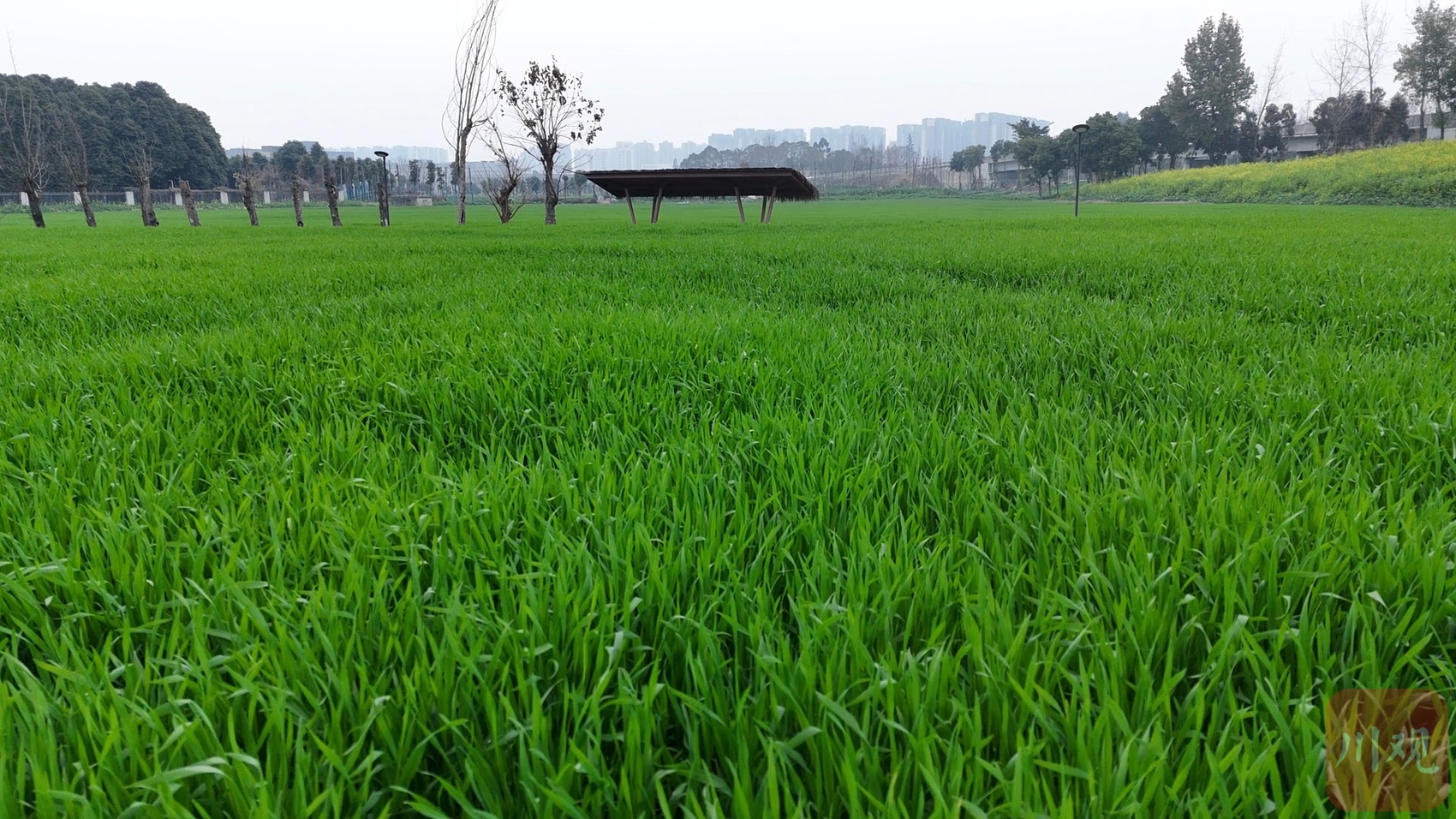2月27日,在成都环城生态区青龙湖绕城高速外侧的田野里,微风吹拂着麦田青色的麦穗。