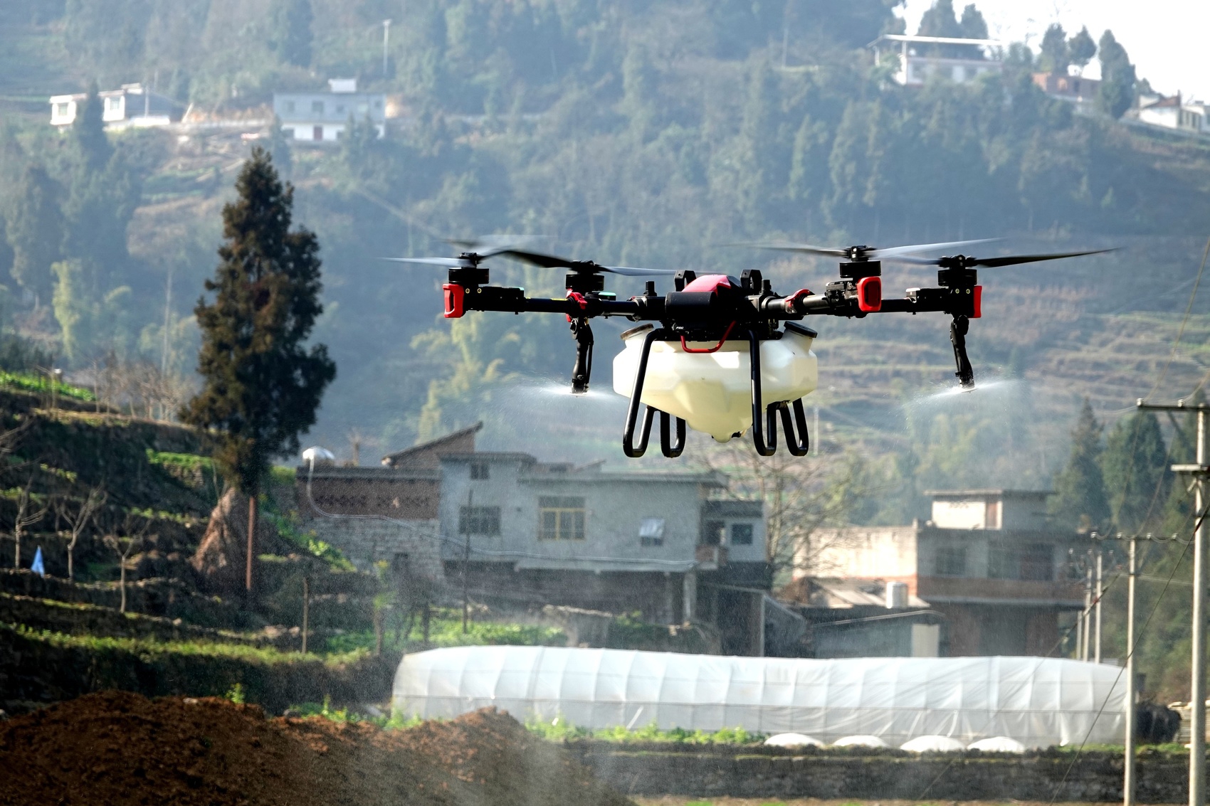 陈飞是新店子村的妇女主任,也是无人机的操作人员。“以前我们的喷药工作,要好几天才能完成,现在有了无人机的帮助,一个小时就能完成,它极大方便了我们的农作。”陈飞介绍,该架无人机搭载了先进的喷洒系统,能够在极短的时间内高效地完成播种、浇水、喷药、施肥等作业。