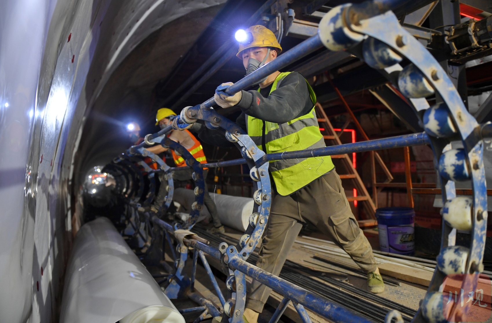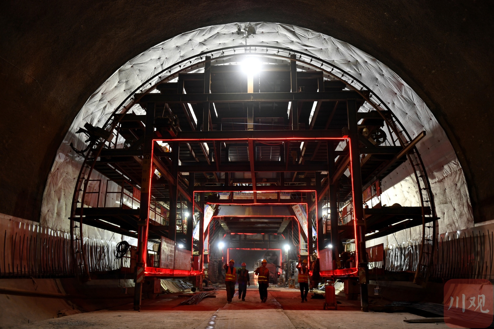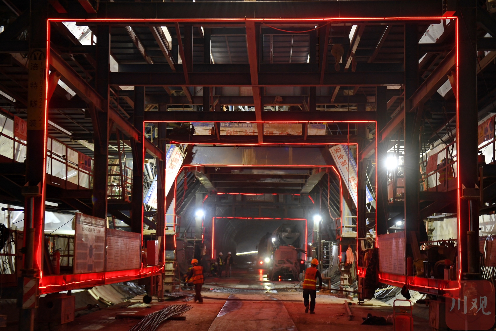 2025年3月3日,位于四川省南充市嘉陵区境内,中铁十二局施工人员在成达万高铁达木山隧道忙碌施工。