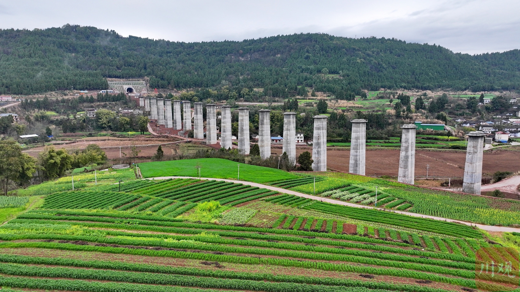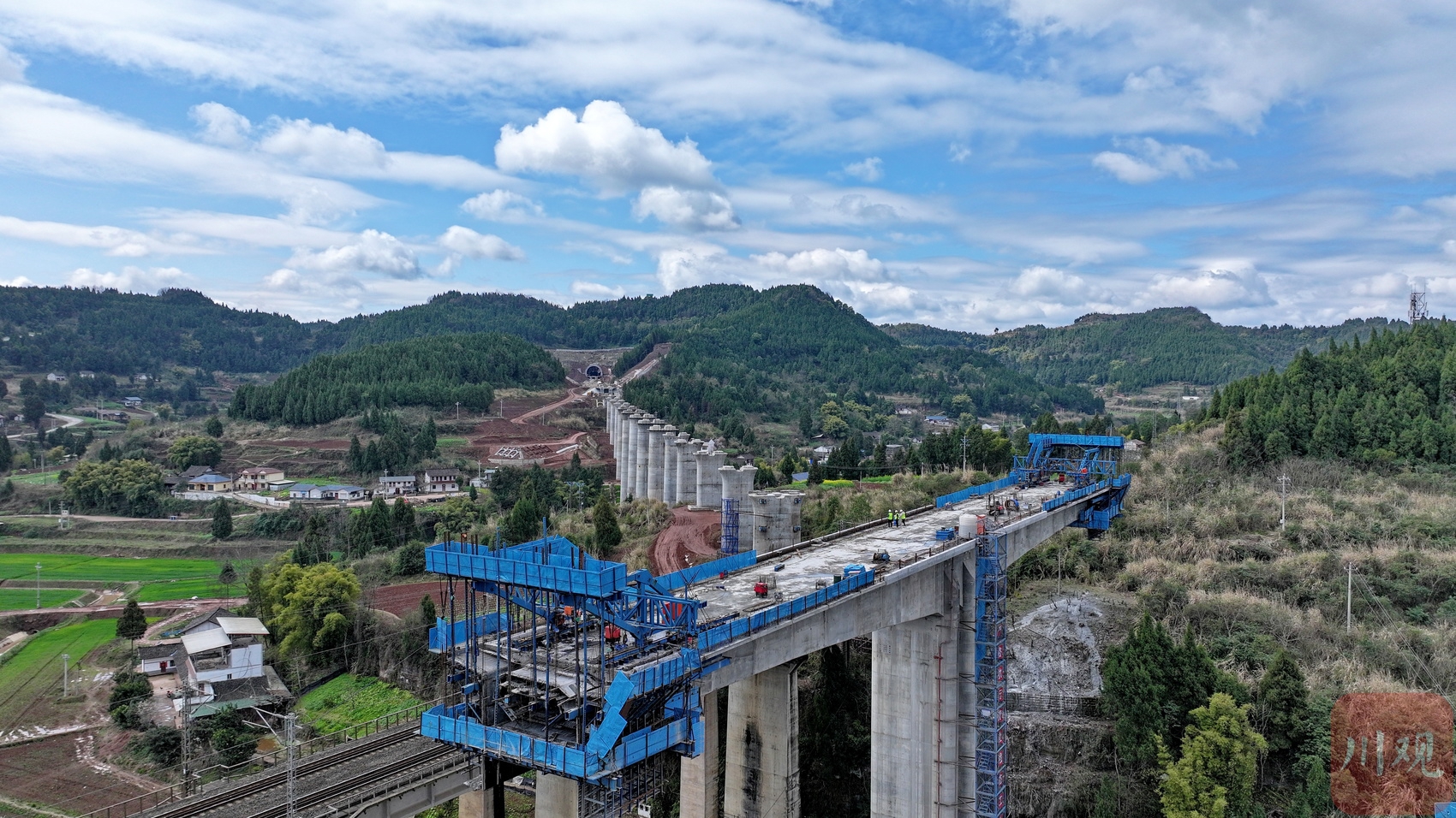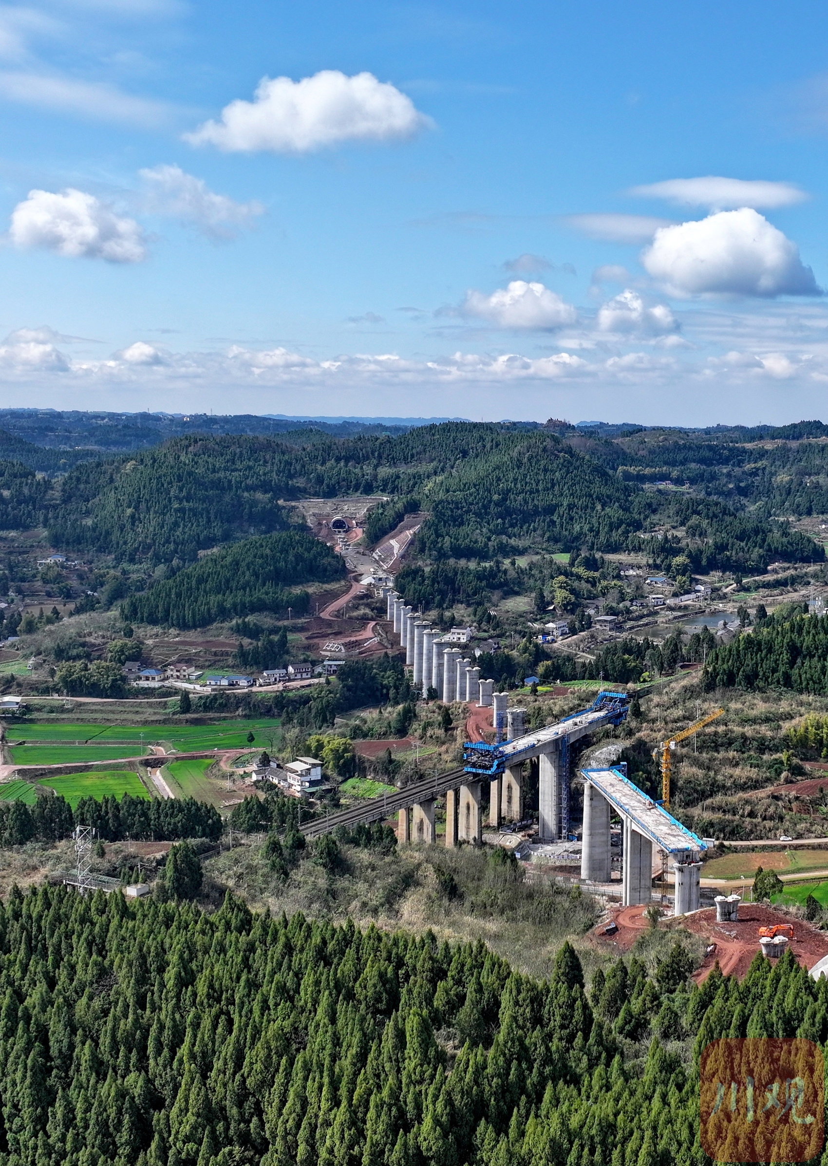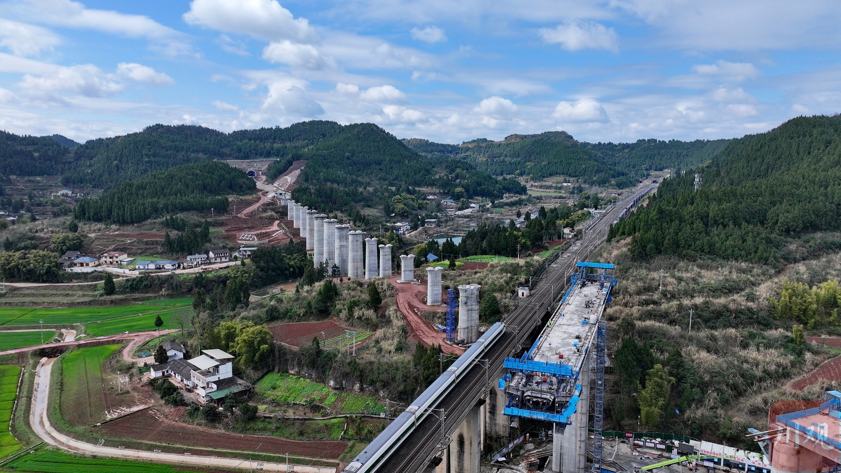 2025年3月3日,位于四川省南充市嘉陵区境内,由中铁十二局承建的成达万高铁桥墩拔地而起。