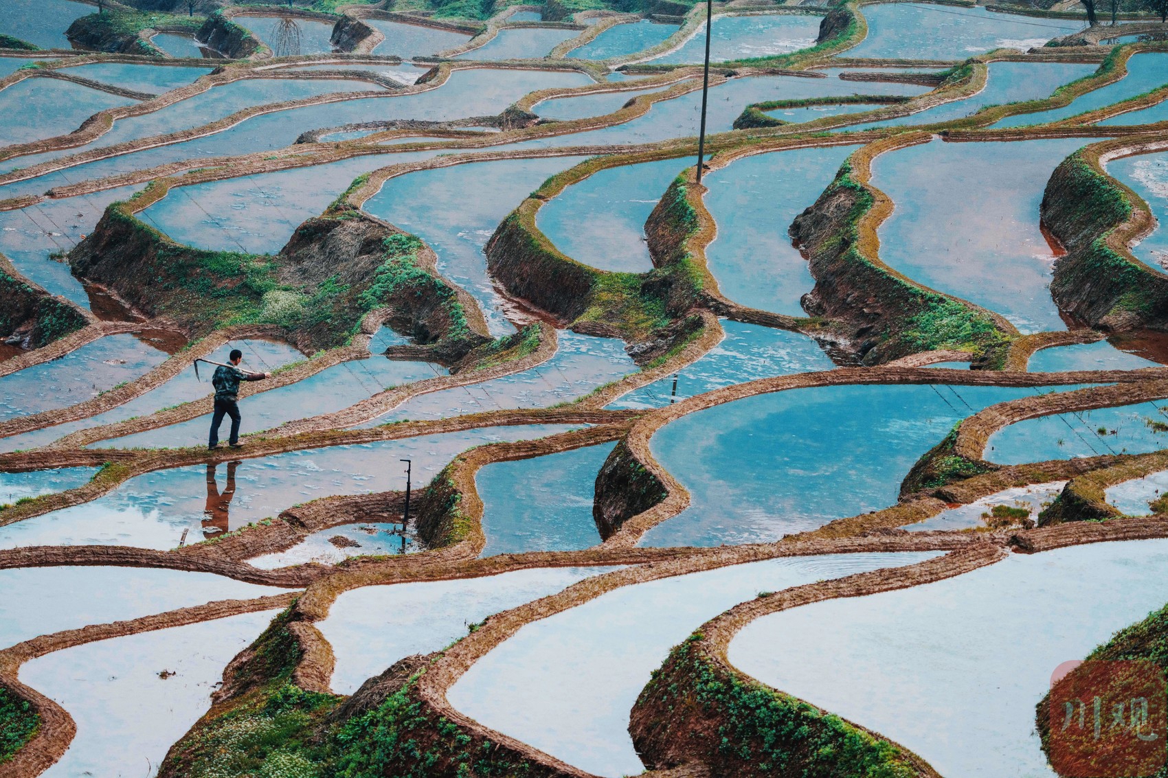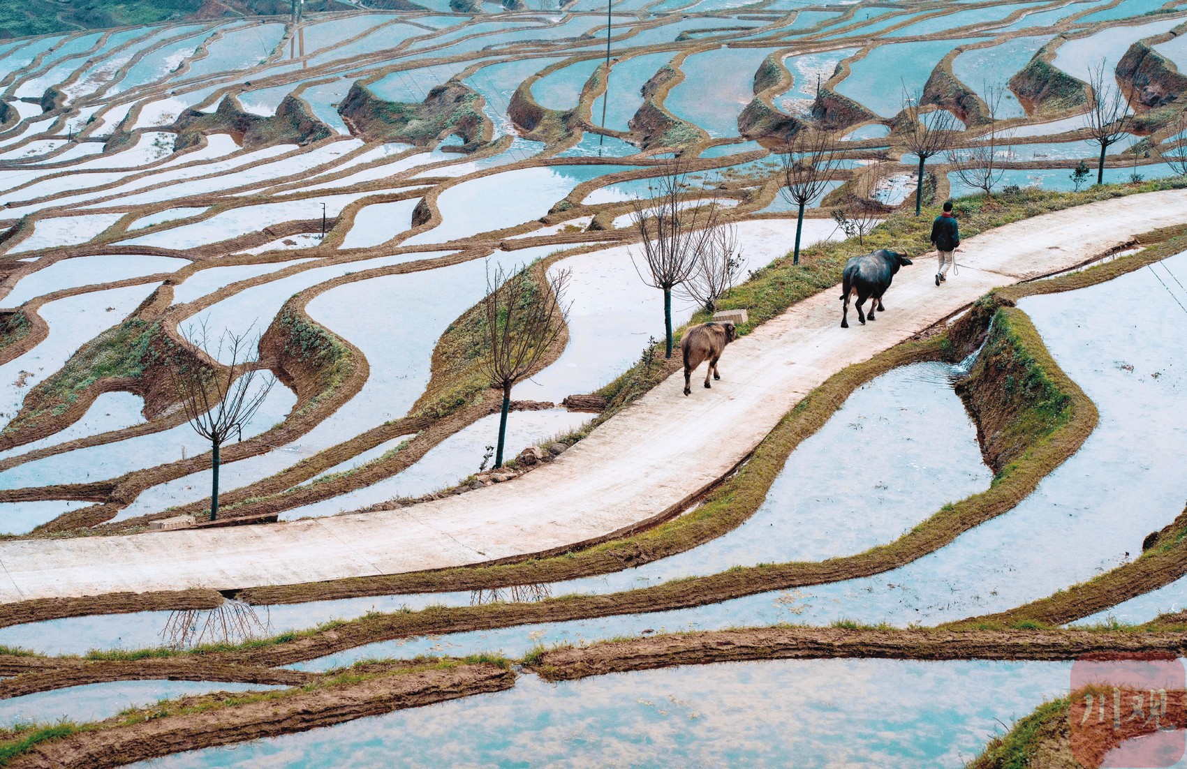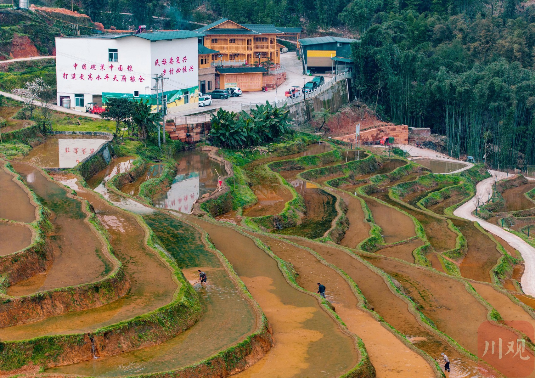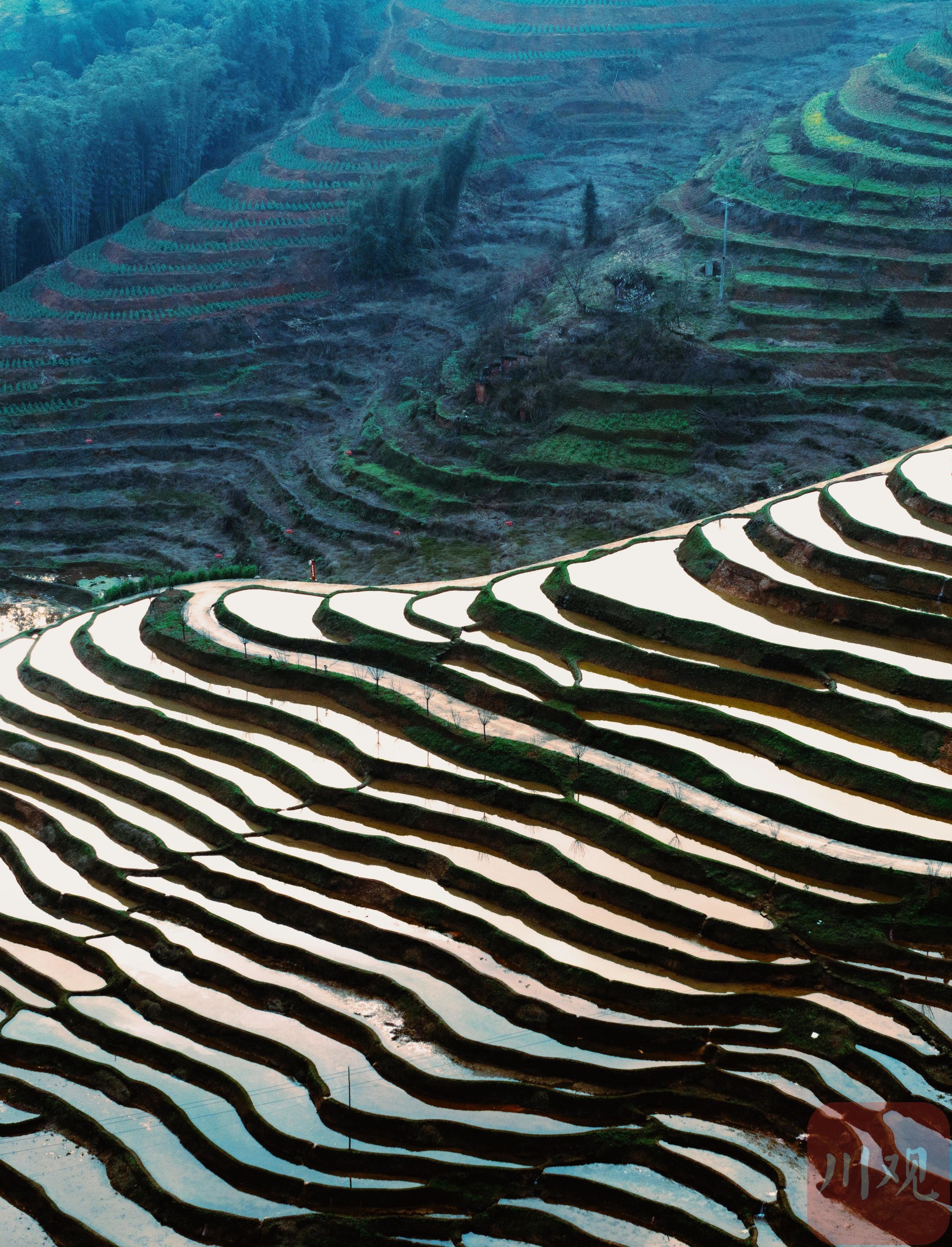 注水完成的梯田。