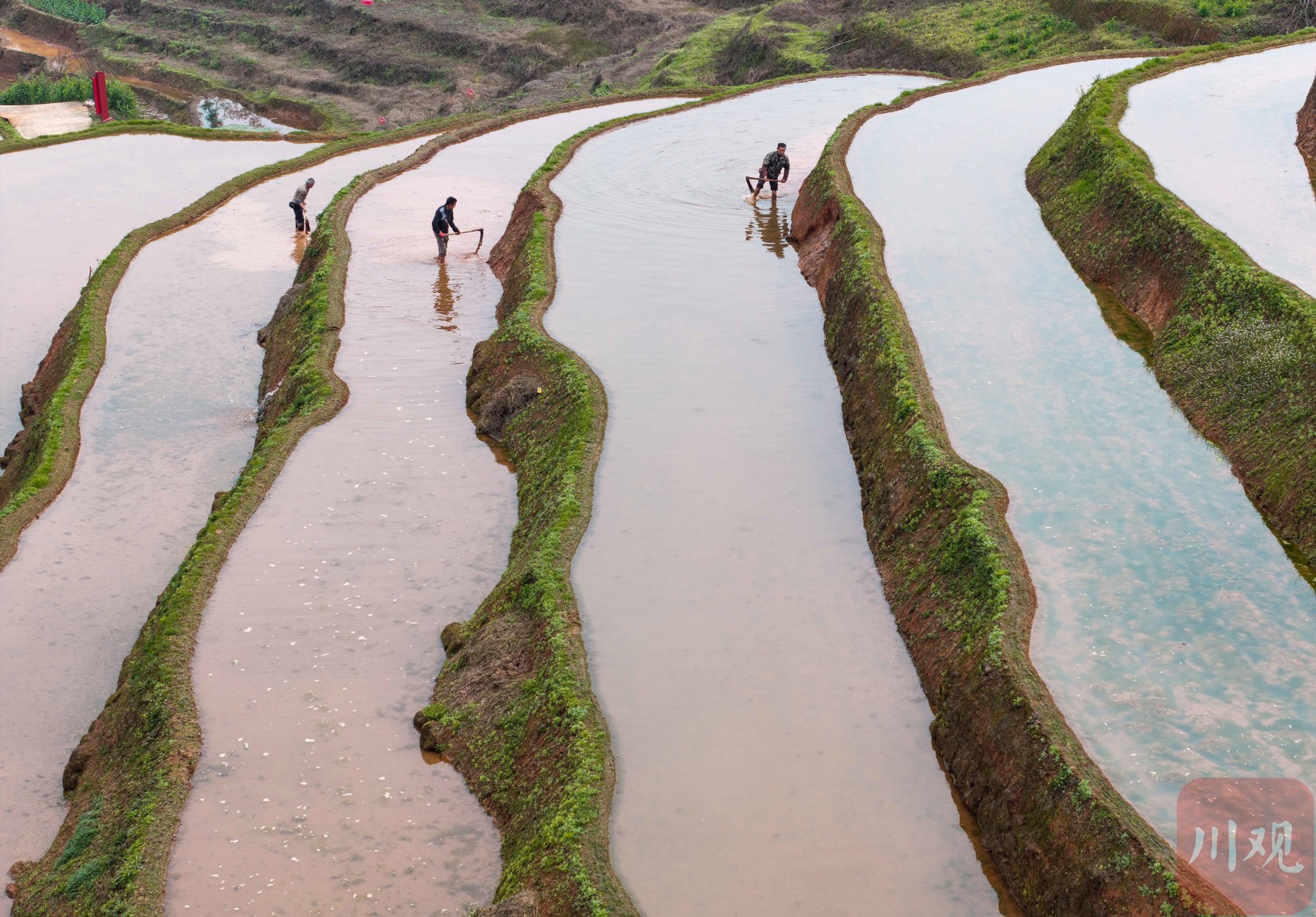 春回大地,万物复苏。3月4日,在泸州市叙永县大石镇旺龙村,千亩梯田波光粼粼,宛如一幅美丽的田园画卷。当地村民们正抢抓农时,蓄水备耕,田间地头一派繁忙景象。