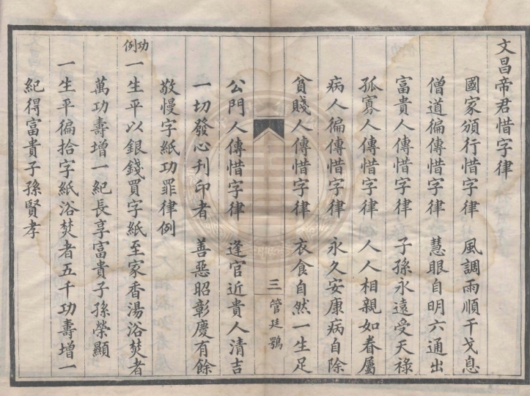 文昌帝君惜字律 (图源:国家图书馆电子资源《惜字征信录 二卷》 清光绪八年(1882)重刻本)