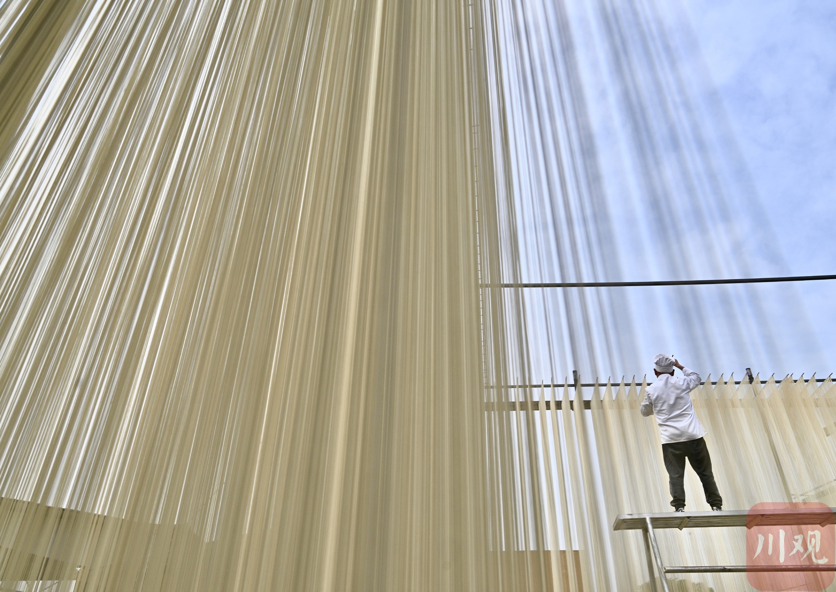 中江手工挂面非遗代表性传承人刘文友正在晾晒挂面。