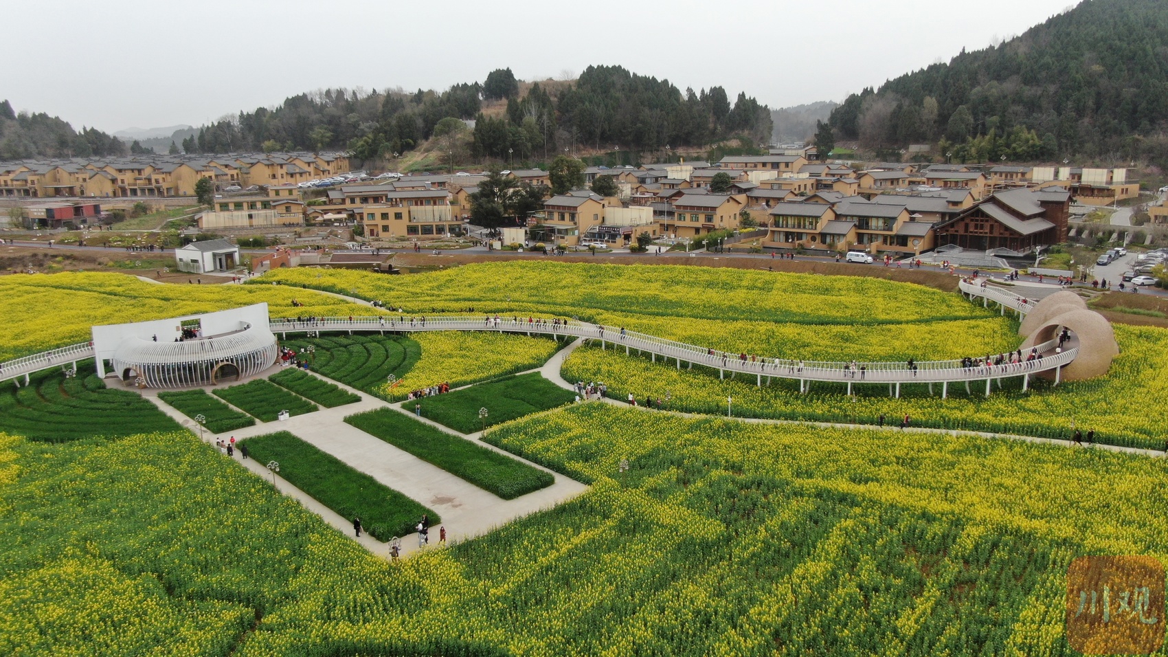 金灿灿的油菜花海与村庄交相辉映,勾画出一幅美丽的田园图卷。