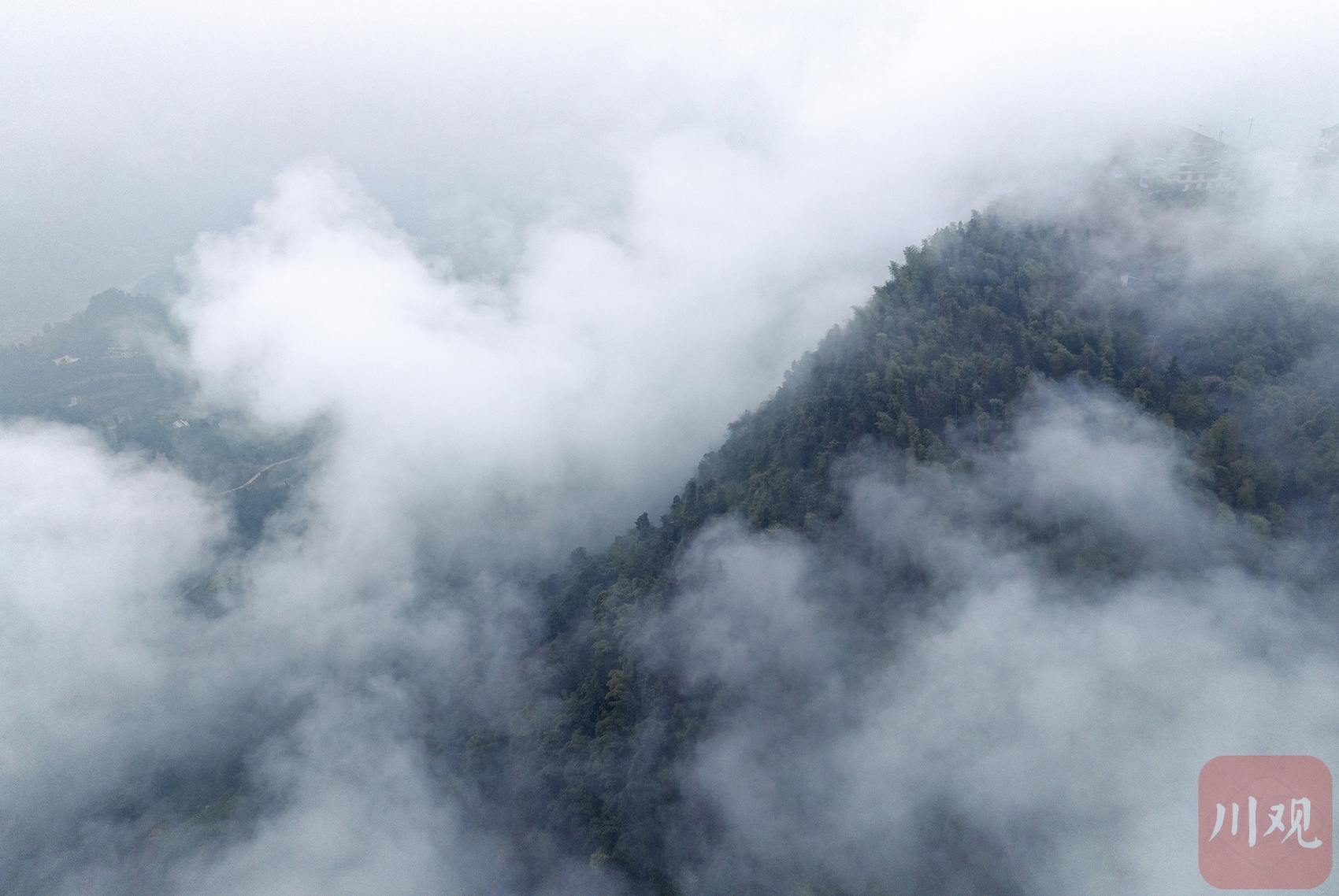 普照山海拔近千米,是纳溪区的最高峰。雨后,山间雾气升腾,茶园、古寺与云雾交相辉映,宛如一幅水墨画卷。
