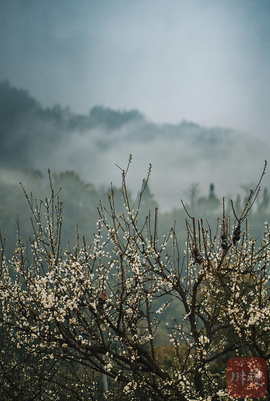山间李花盛开。