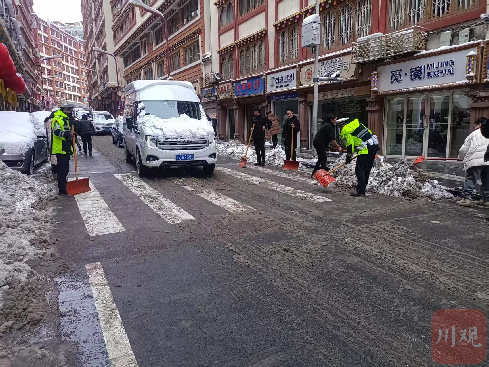 “市区积雪达30厘米,交警部门已全员上岗与其他部门一起清除积雪,保障市区车辆正常通行。”康定市公安局交警大队工作人员周俊鸿介绍,在两岔路、鸳鸯坝、二道桥、新都桥木雅圣地4个管制点,对车辆实行交通管制,并禁止所有车辆上折多山。高速方面积极与友邻协作。