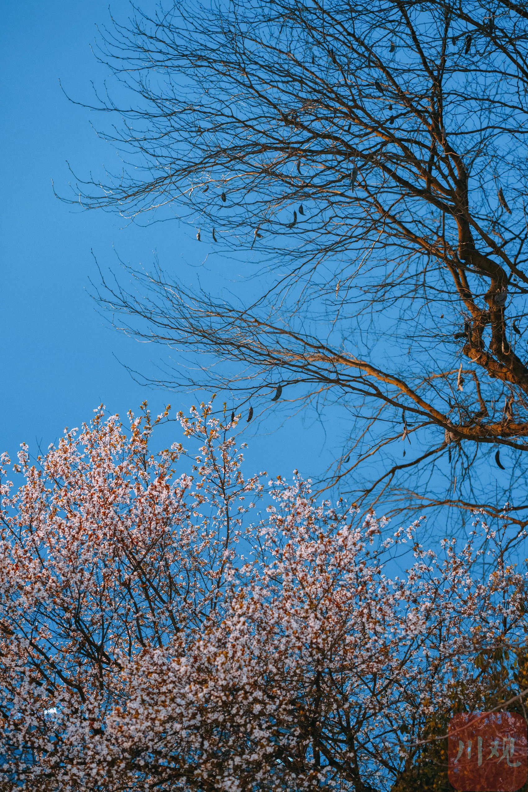 合江亭旁红叶李树正盛开。