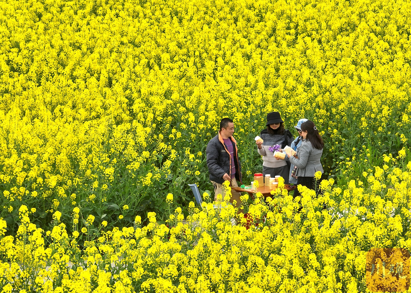 新酿制的菜花蜜吸引游客。