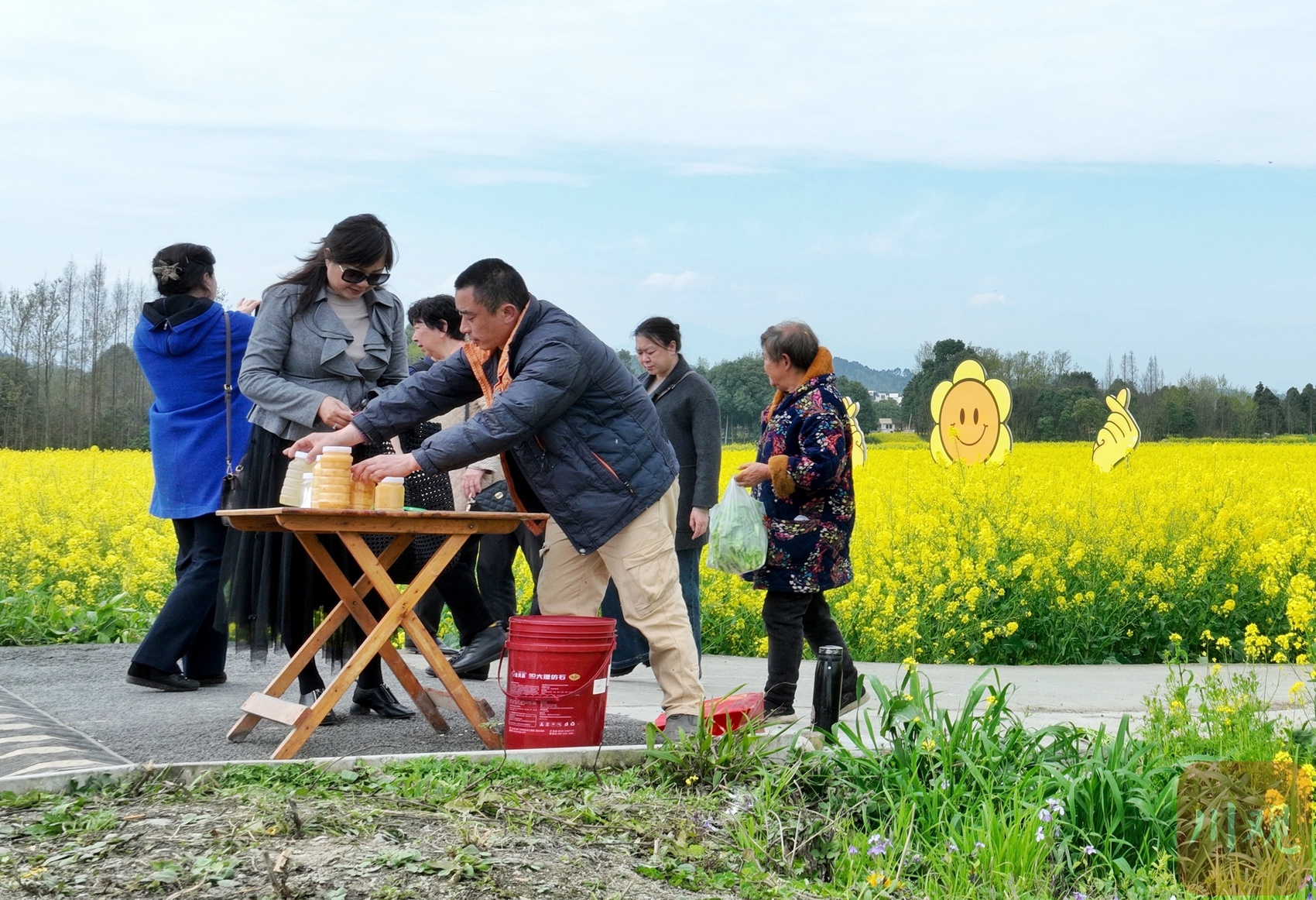 3月里,成都崇州市道明镇顺江村抓住油菜花最好的观赏时节,当地村民不仅把户外帐篷、围炉煮茶等休闲项目搬进了油菜花海,还在花田里向游客推销自酿的菜花蜜。