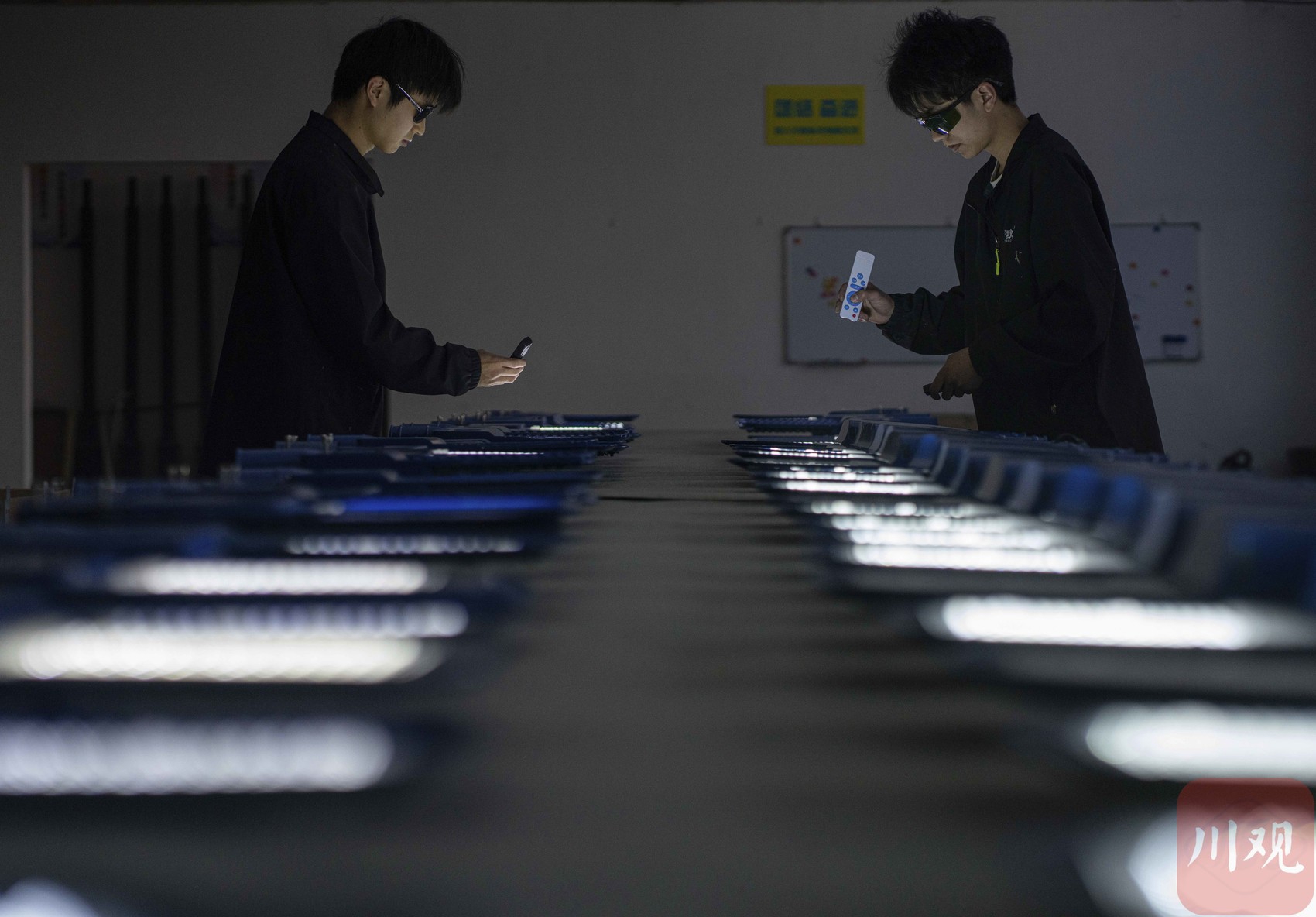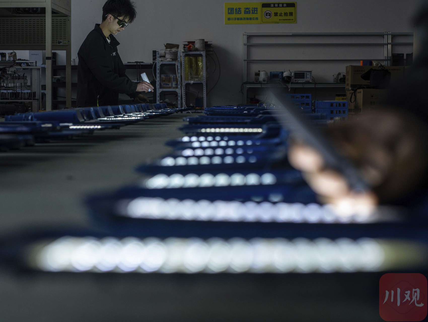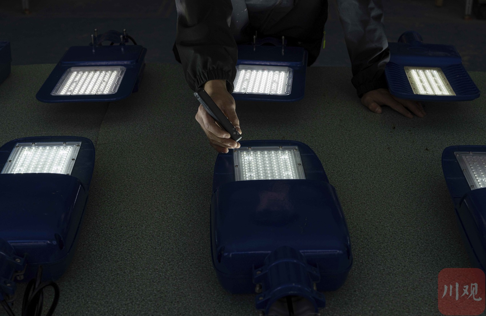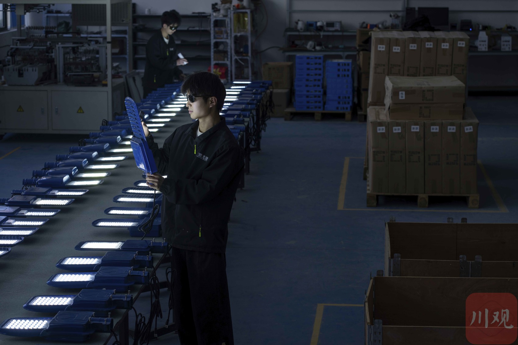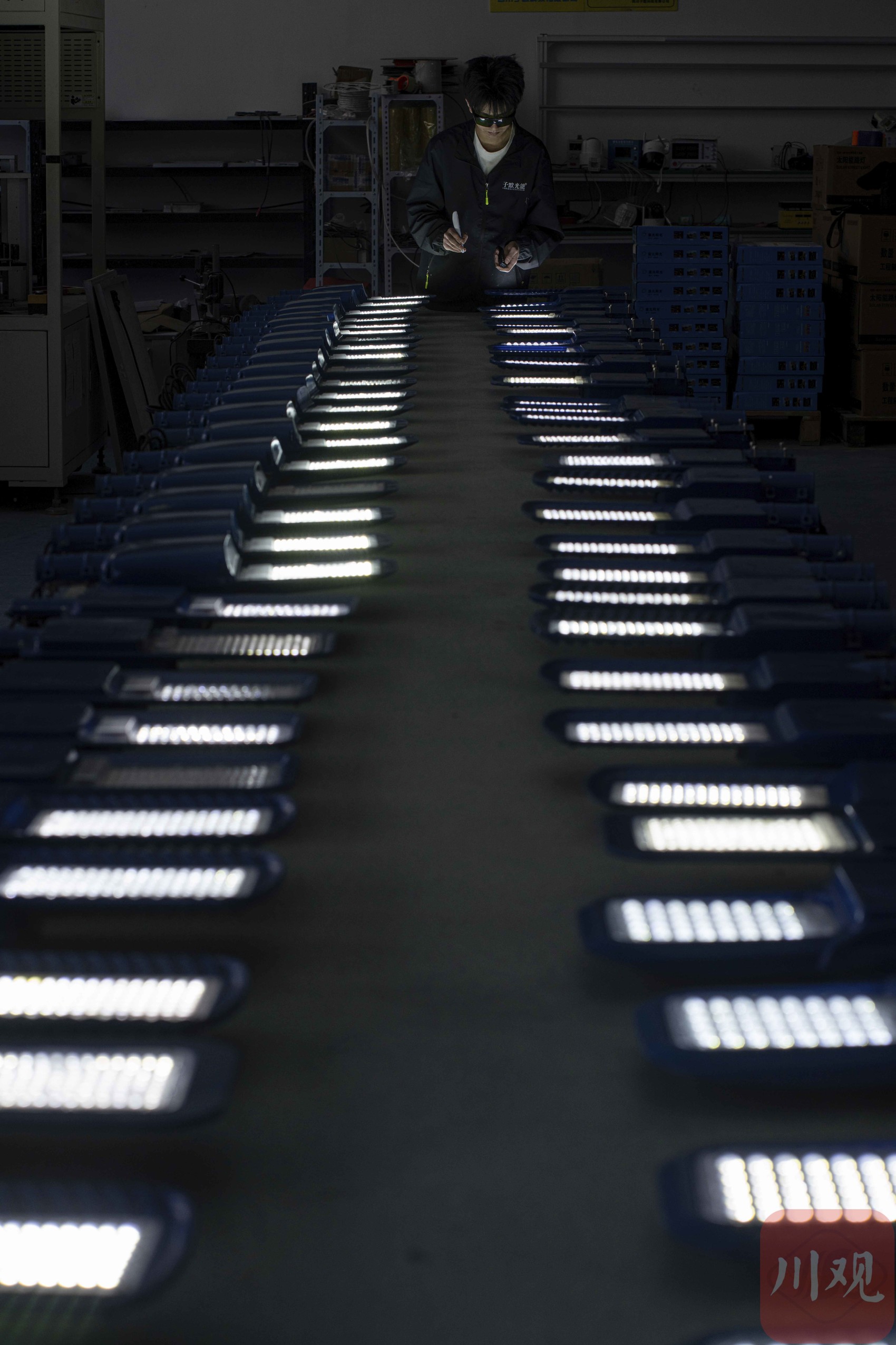 3月25日,泸州市纳溪经济开发区四川子默科技有限公司的厂房内灯火通明,生产线上,工人正检测即将出厂交付贵州的太阳能路灯。这些路灯均加装了5G模块,通过手机APP即可实现画面与声音的实时传输,赋能智慧乡村管理。