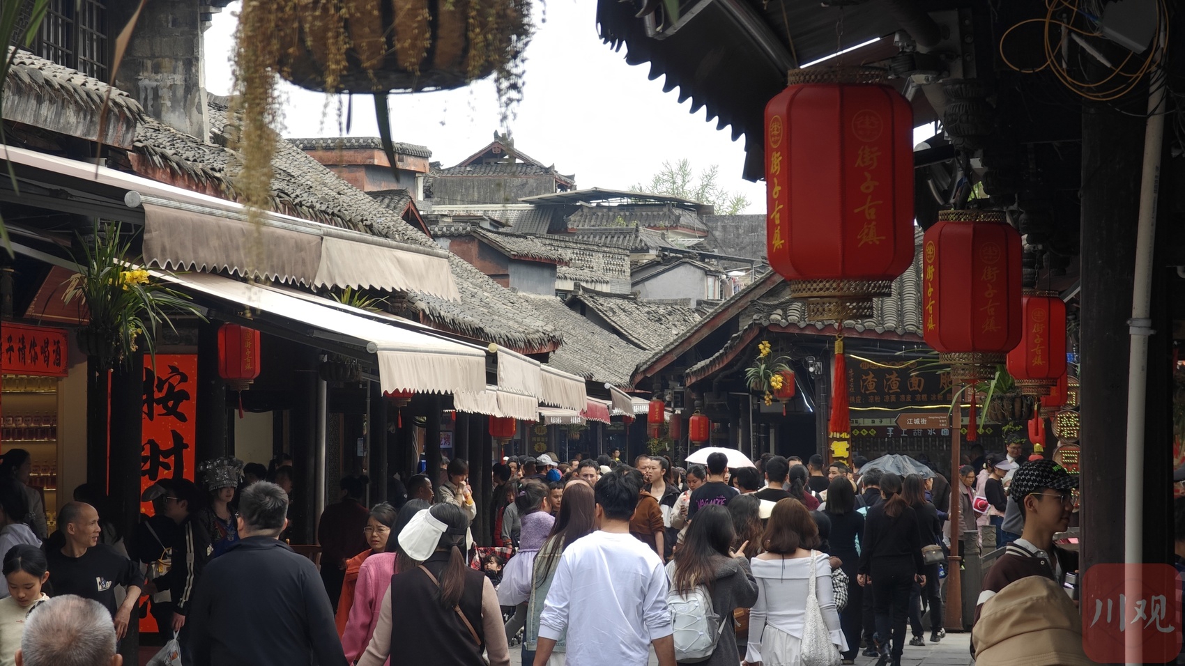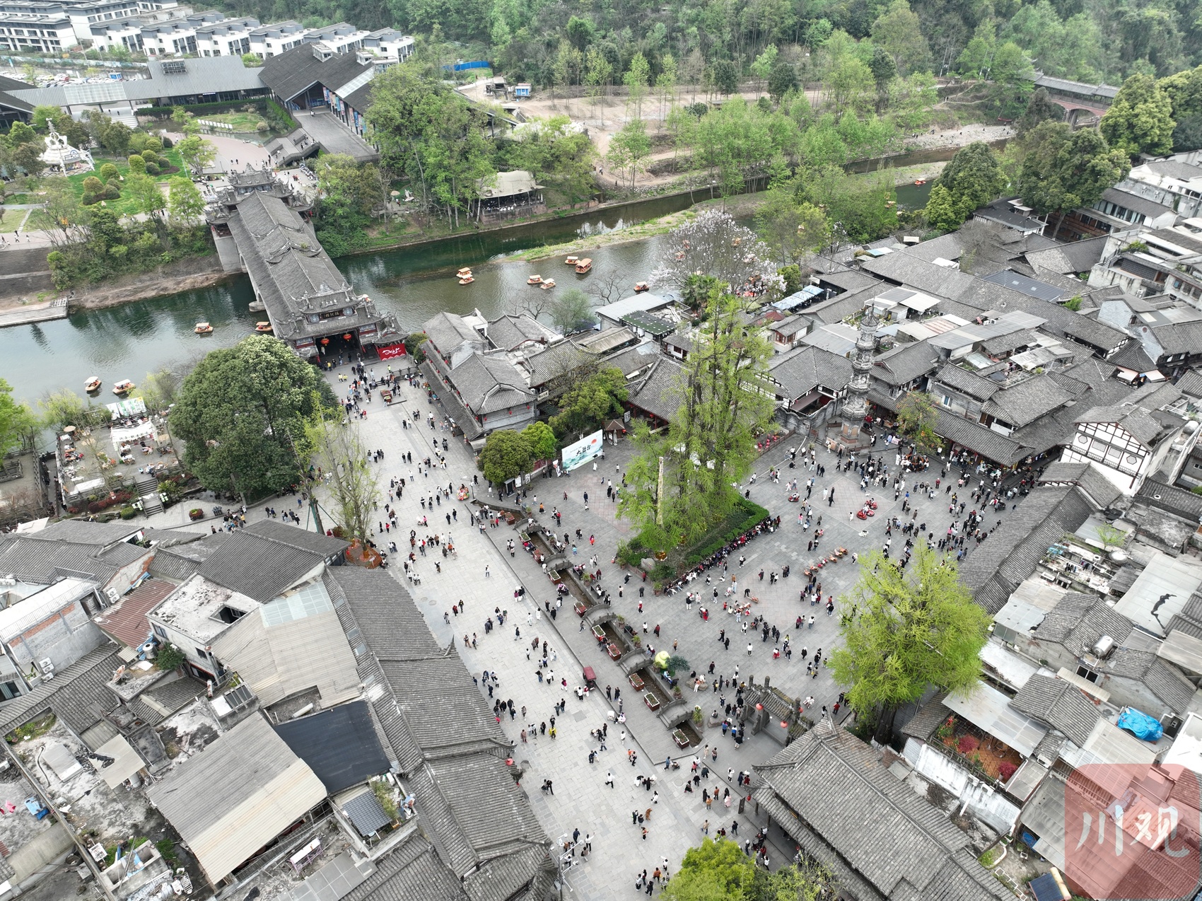 4月4日,清明小长假首日,崇州街子古镇迎来众多游客。