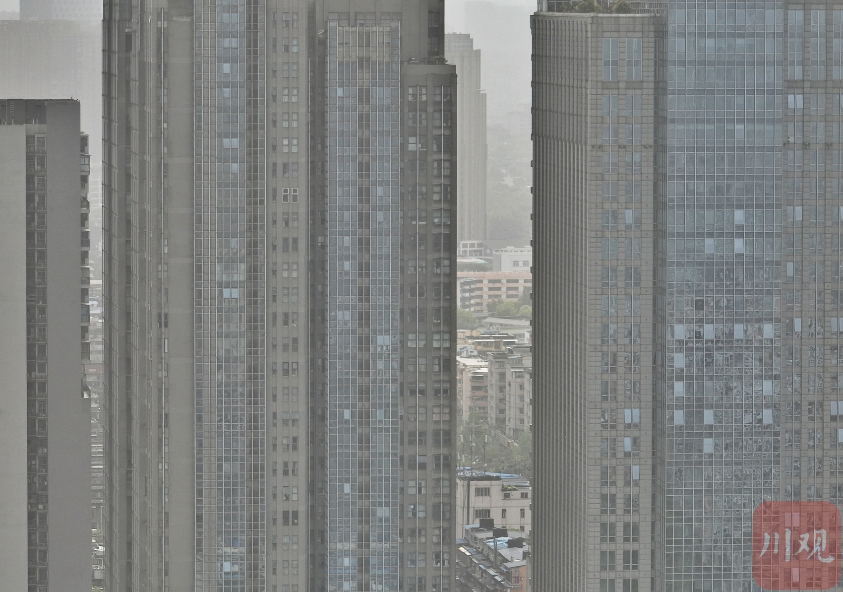 4月12日午后,成都南边出现黄黑色的尘埃,它们沿着城际线向市区袭来。不到半小时,市中心的楼宇、街道能见度就明显下降。往日从市中心远眺,在建468大楼还清晰可见,但此时已完全笼罩在阴色里。建议市民减少户外活动,外出时佩戴口罩,敏感人群尽量避免外出。