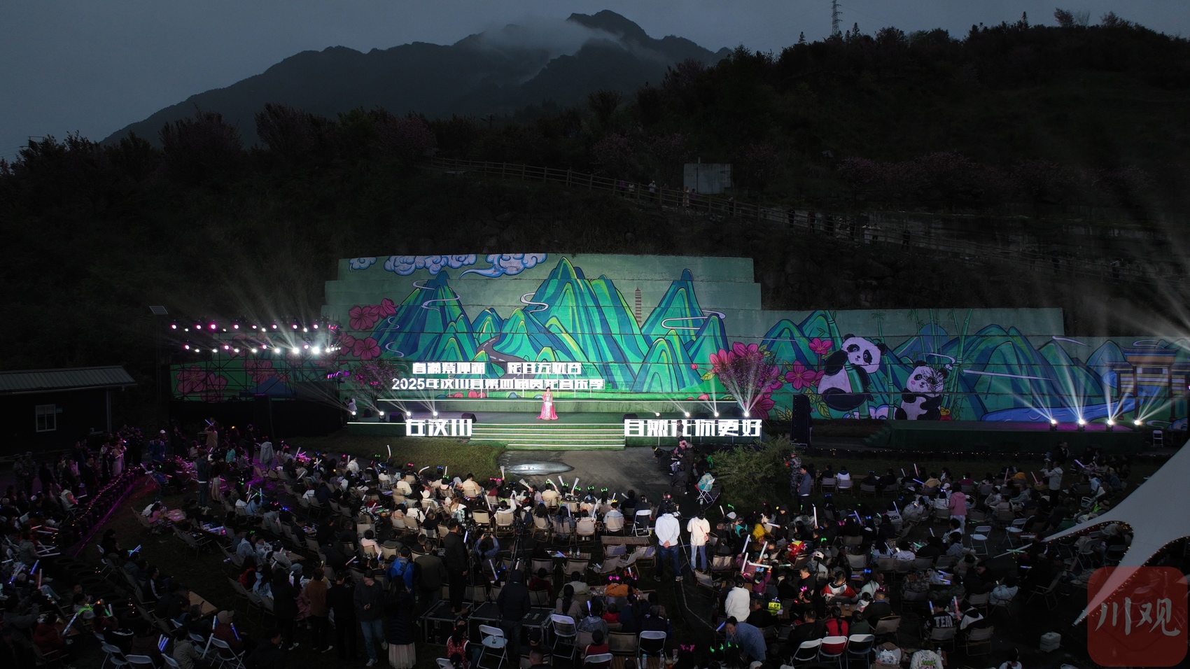 活动以“赏花+音乐+徒步”为主线,精心设计了10个特色打卡点。游客们穿梭樱花林间、驻足阿来书屋、漫步忘忧小径,在领略岷江大峡谷壮美景色的同时,感受汶川独特的文化魅力。夜幕降临后,歌手的民谣弹唱与乐队的激情演绎交相辉映,手鼓表演更是点燃全场热情,游客们挥舞荧光棒,在樱花树下随着音乐摇摆,构成一幅动人的春夜画卷。