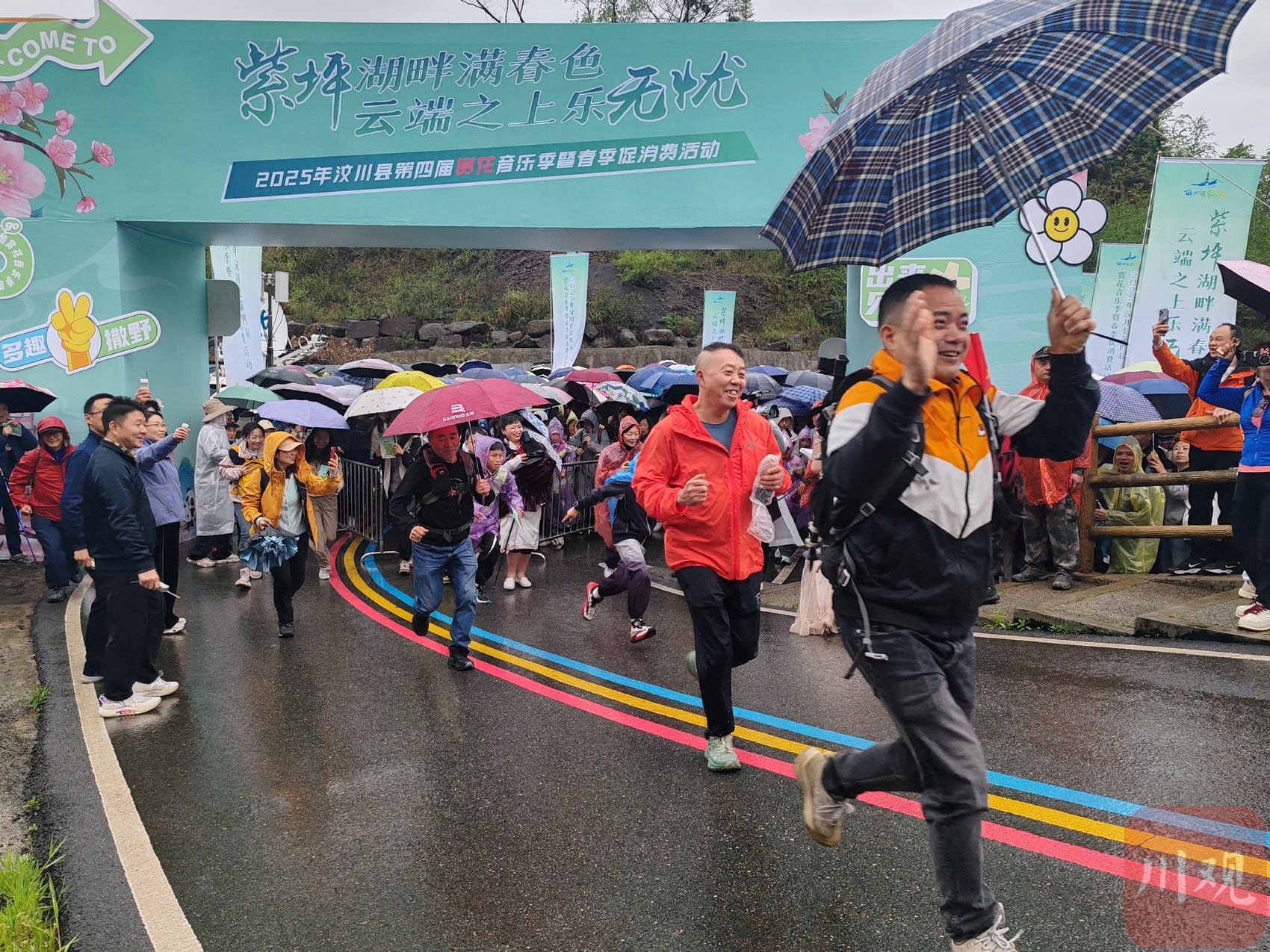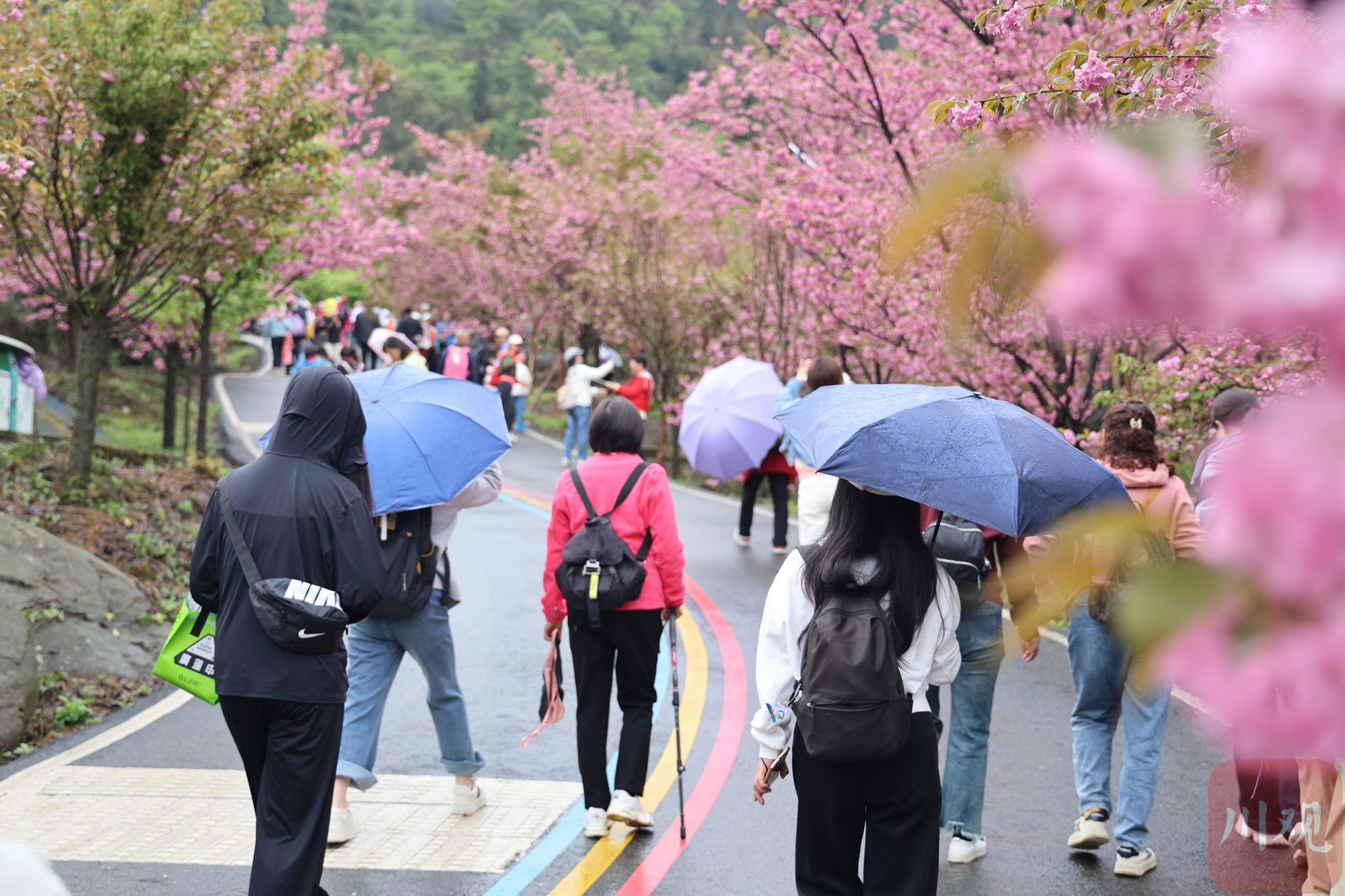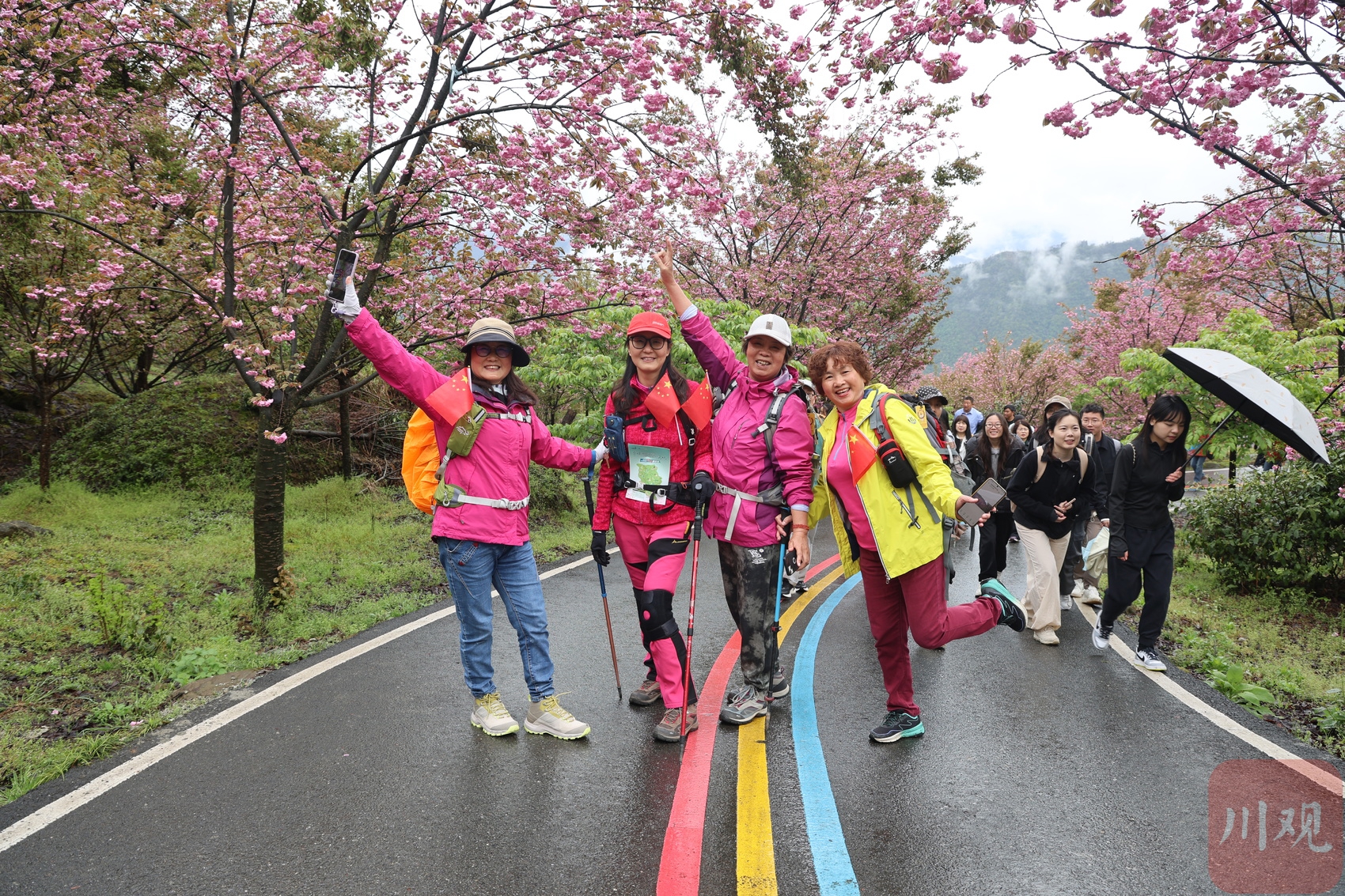 4月12日,游客在阿坝州汶川县漩口镇赵公村参加“第四届赏花音乐季”徒步活动。