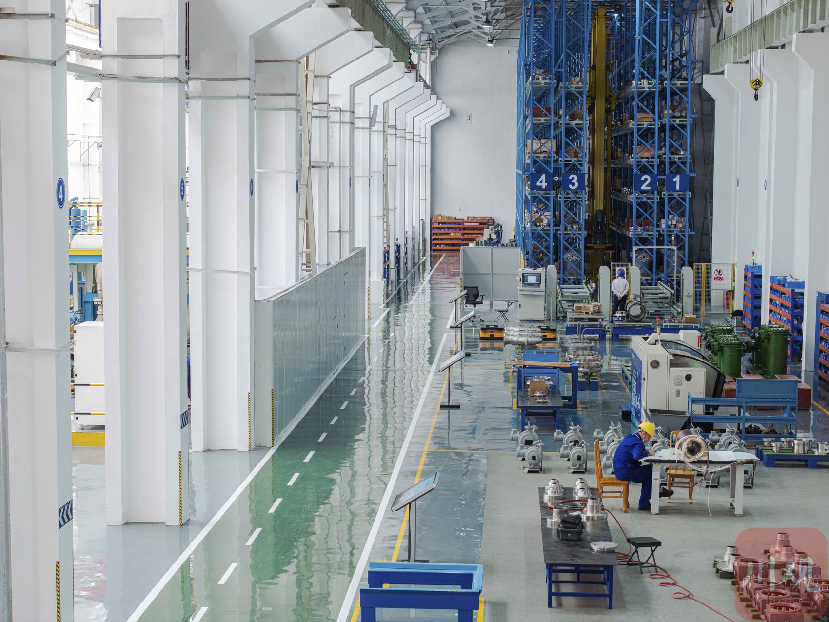 4月15日,东方电气集团东方电机有限公司(以下简称:东方电机)屏蔽泵数字化车间内,技术人员正在操控着电脑,让堆垛机准确地从10多米高的立库上将生产物料取出,经过AGV机器人将物料送到生产的工位。