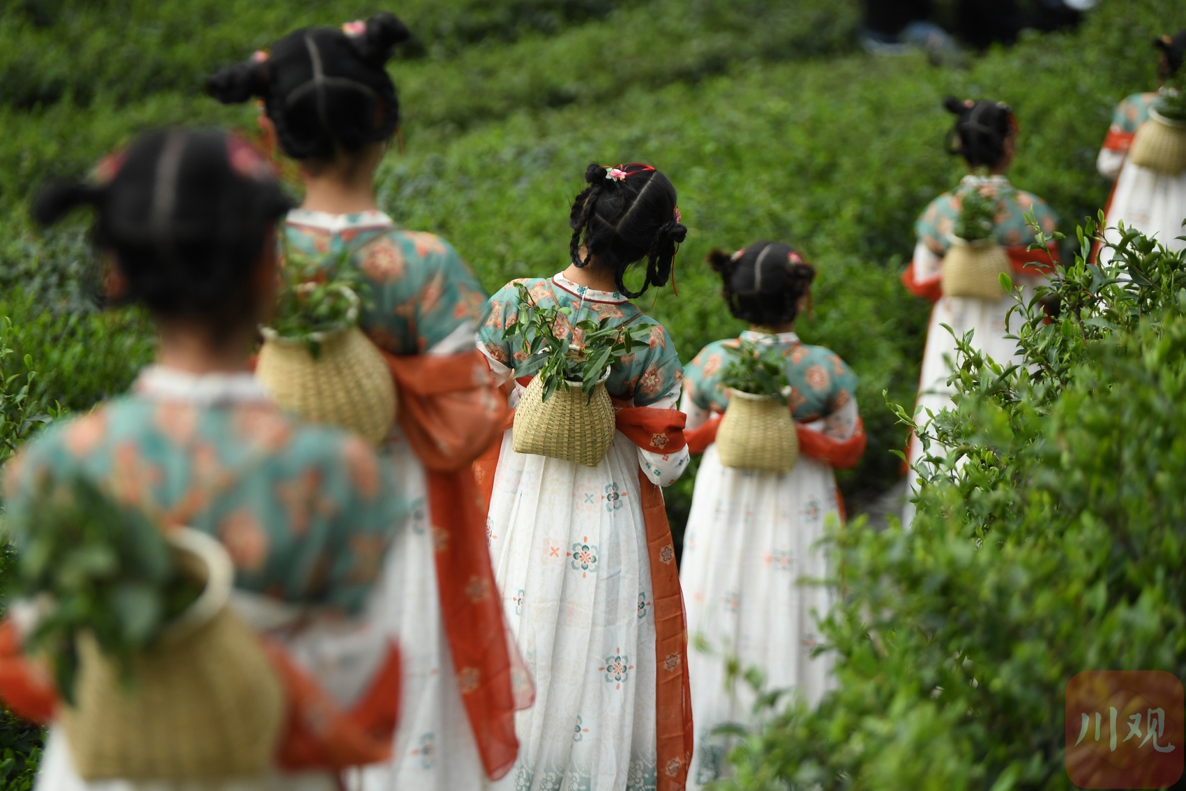 小学生背着小背篓表演《茶祖颂》节目。