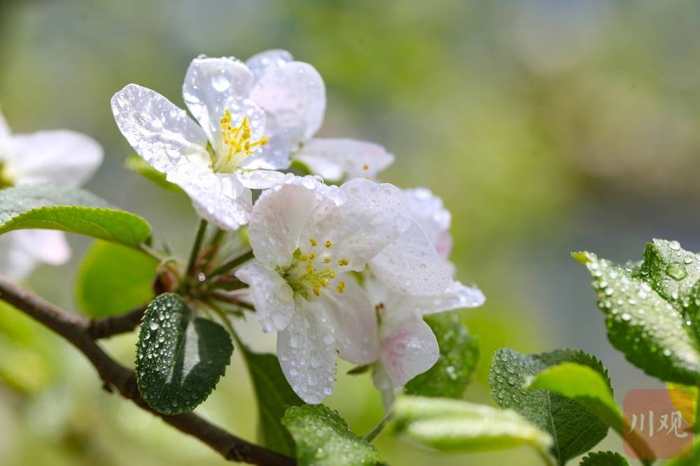 芳菲四月,雅安市汉源县宜东、九襄、富庄等乡镇的7万余亩苹果花接力梨花渐次绽放。
