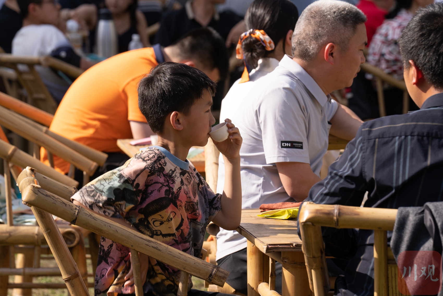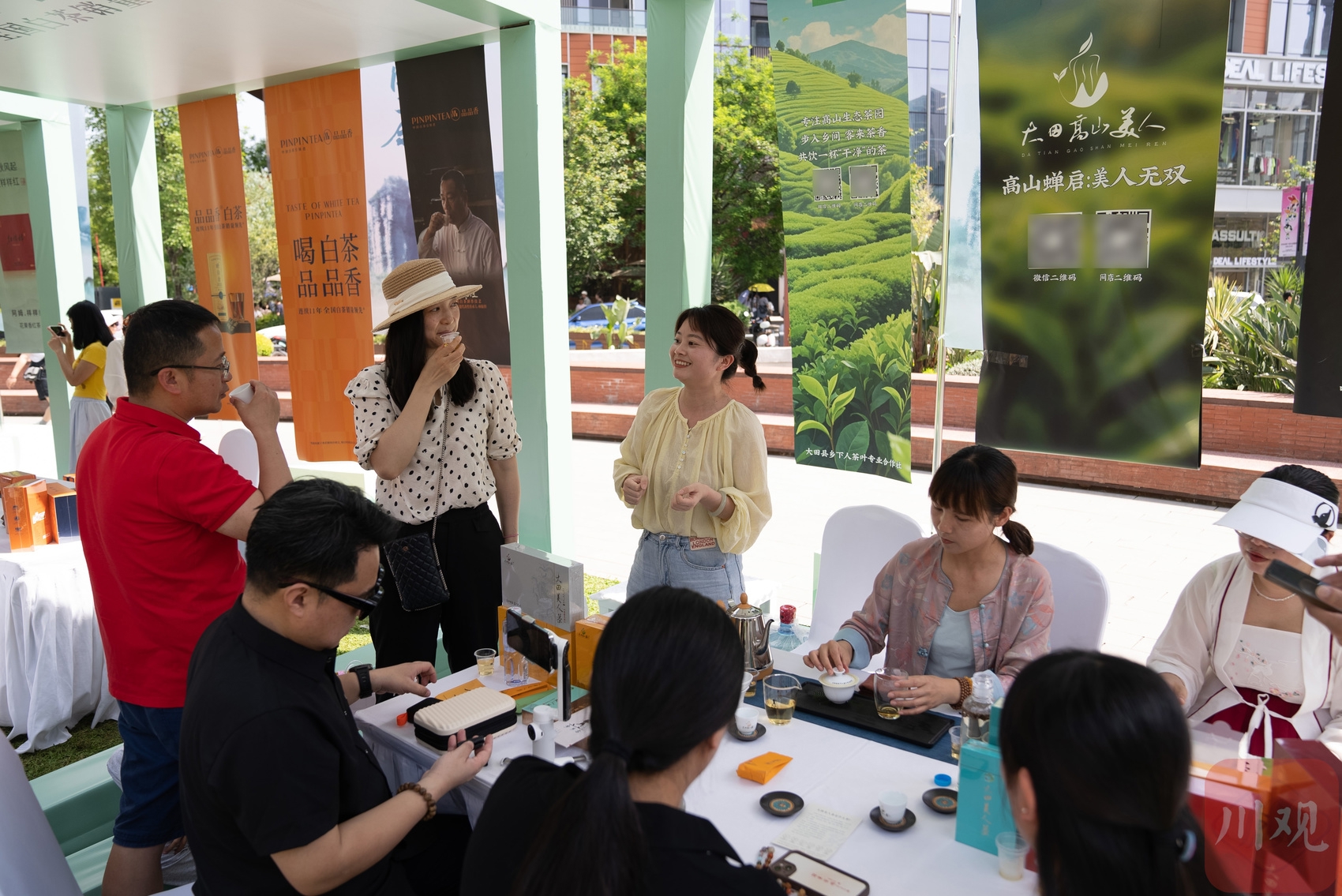 市民游客在现场品茶。